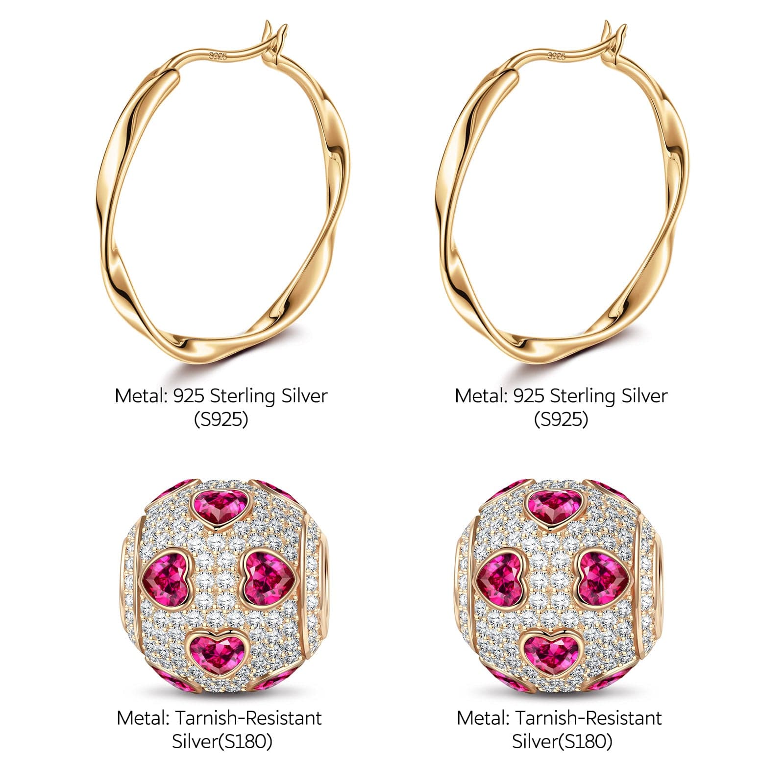 Sterling Silver Pink Love Earrings In 14K Gold Plated