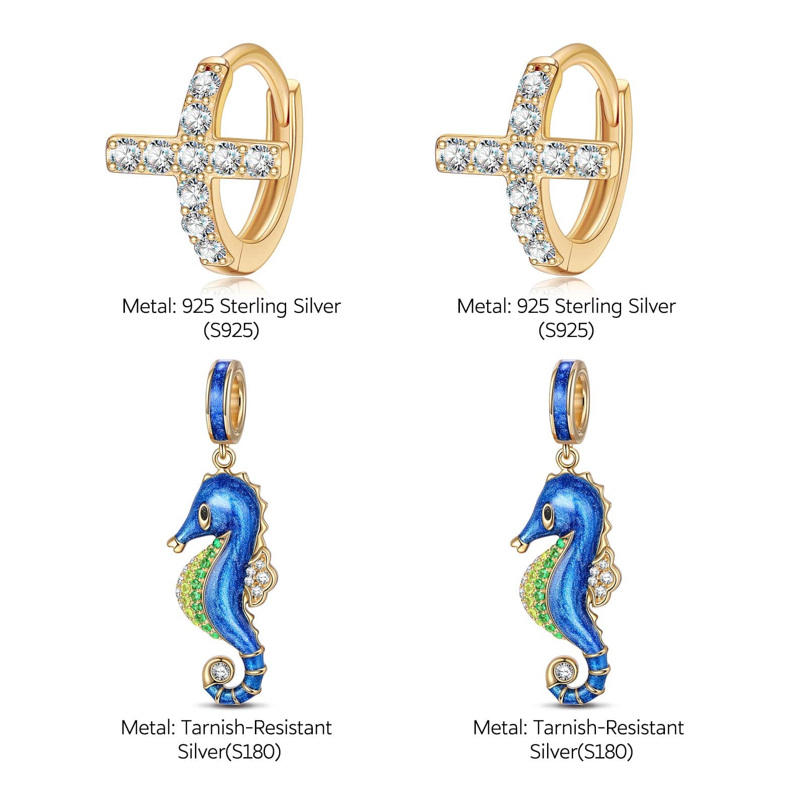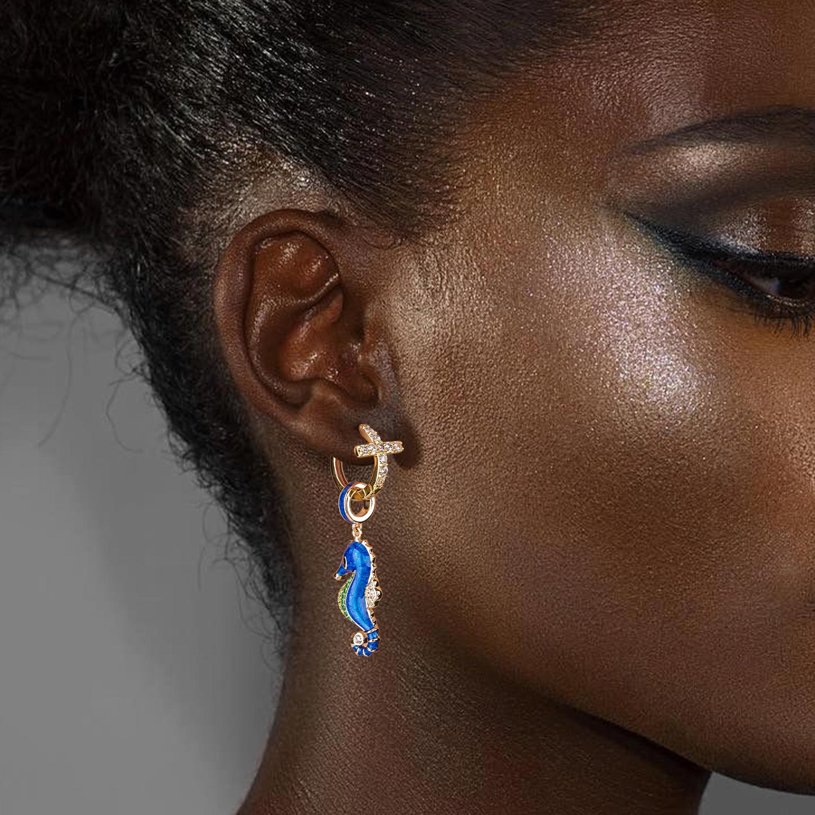 [?As @katstyle42's Pick] Sterling Silver Blue Seahorse Hoop Earrings With Enamel In 14K Gold Plated