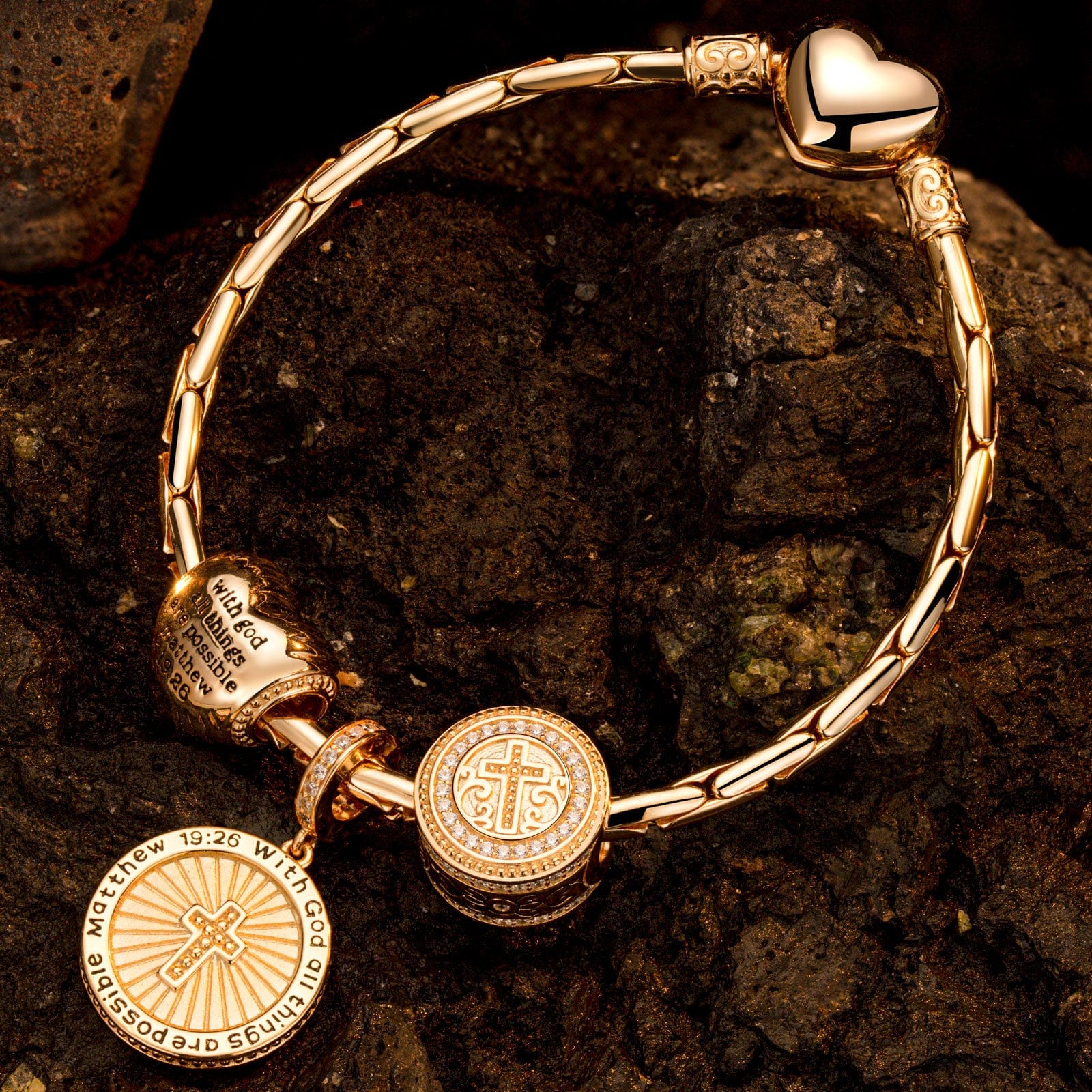 Design: The inscription reads: with God all things are possible matthew; combined with the heart shape and the cross element; God's welfare, we will always be engraved in our hearts; expressing the belief in God, we can facilitate God's presence and the light of God will become our own amulet.