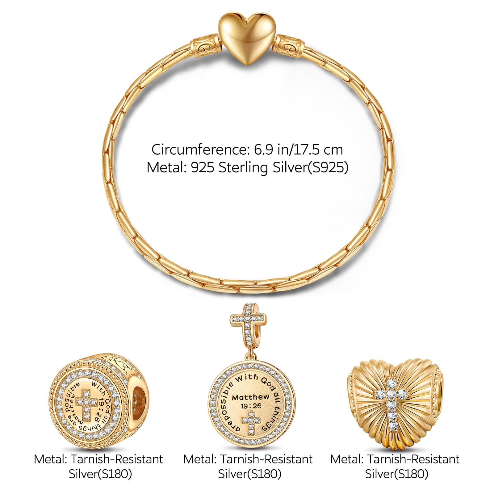 Sterling Silver God's Welfare Charms Bracelet Set In 14K Gold Plated