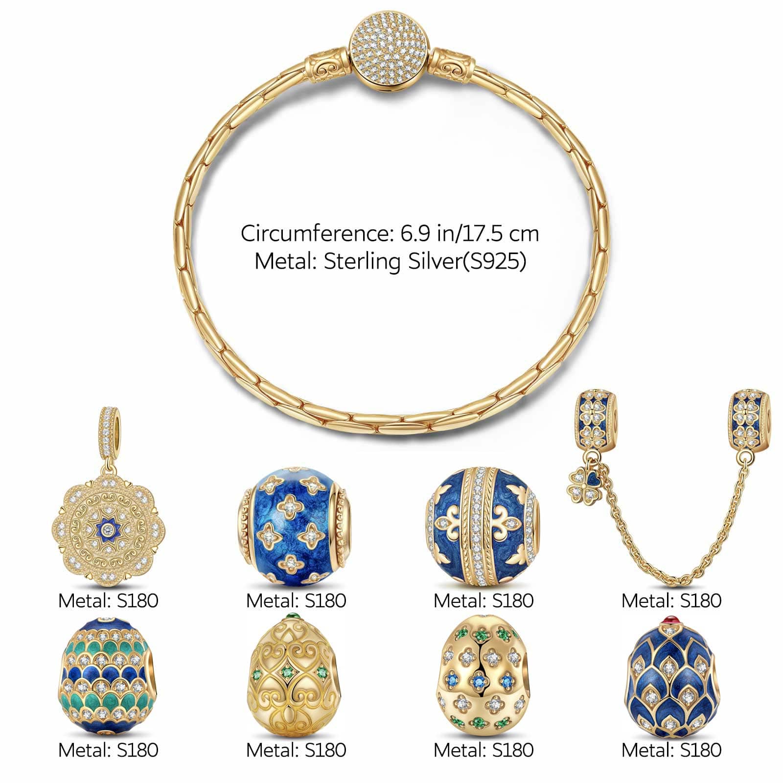 Sterling Silver Easter Blooms Charms Bracelet Set With Enamel In 14K Gold Plated