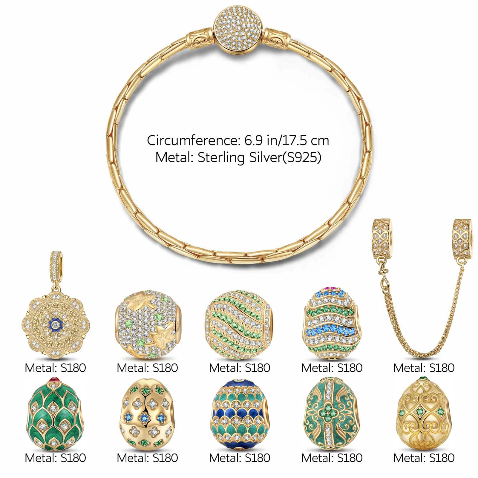 Sterling Silver Easter Treasures Charms Bracelet Set With Enamel In 14K Gold Plated