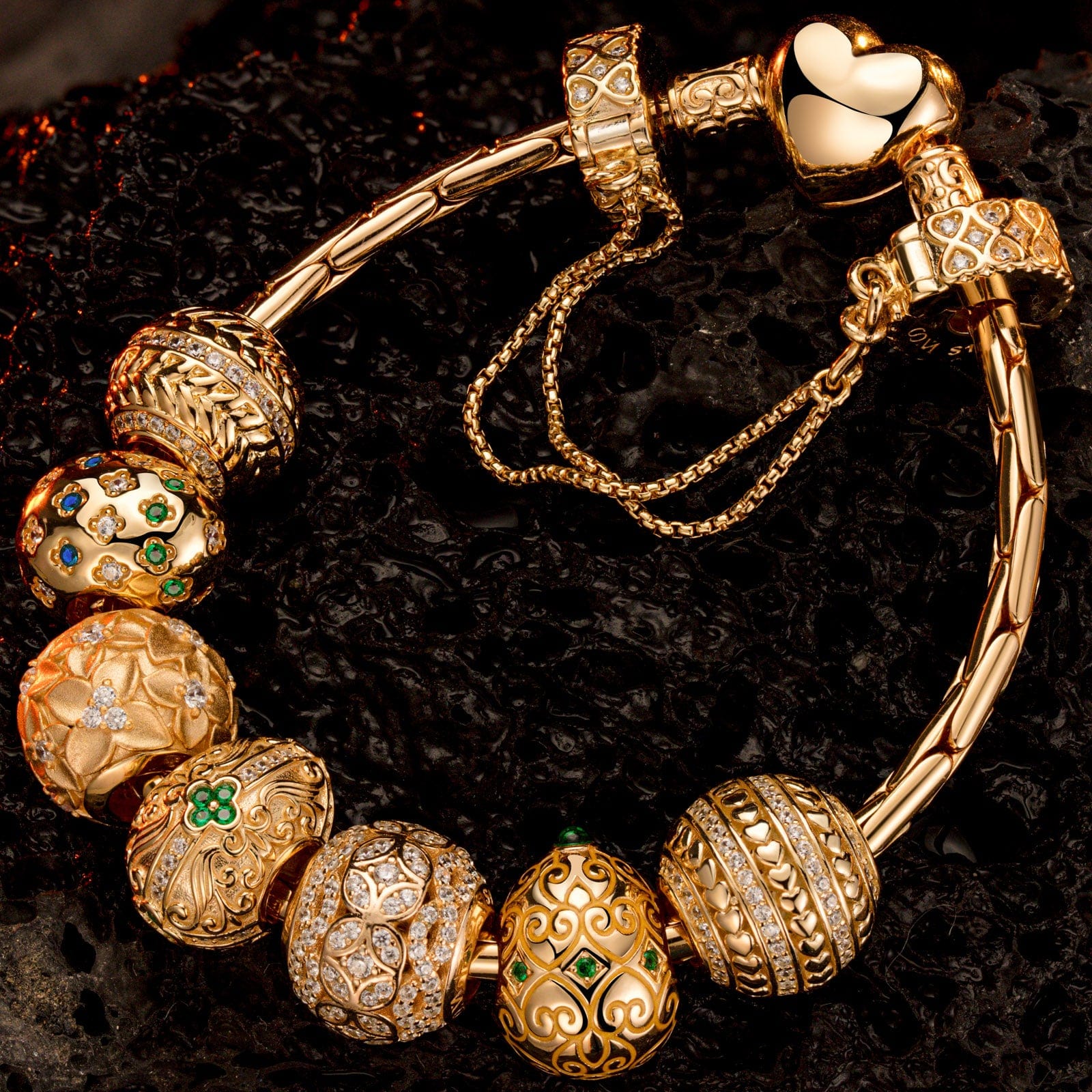 Sterling Silver Golden Birth Charms Bracelet Set In 14K Gold Plated