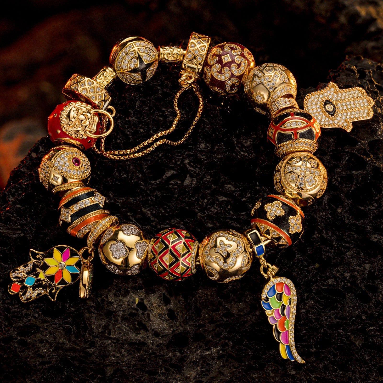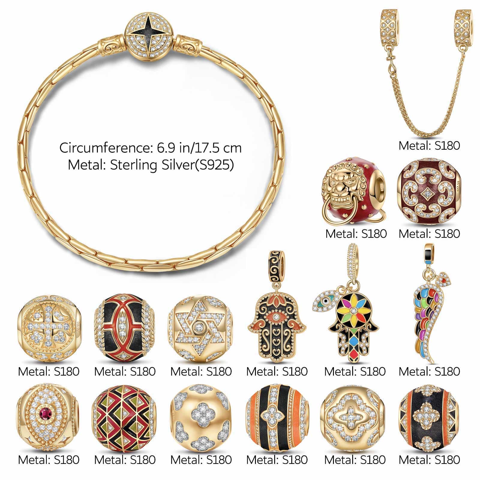 Sterling Silver Easter Blooming Charms Bracelet Set With Enamel In 14K Gold Plated