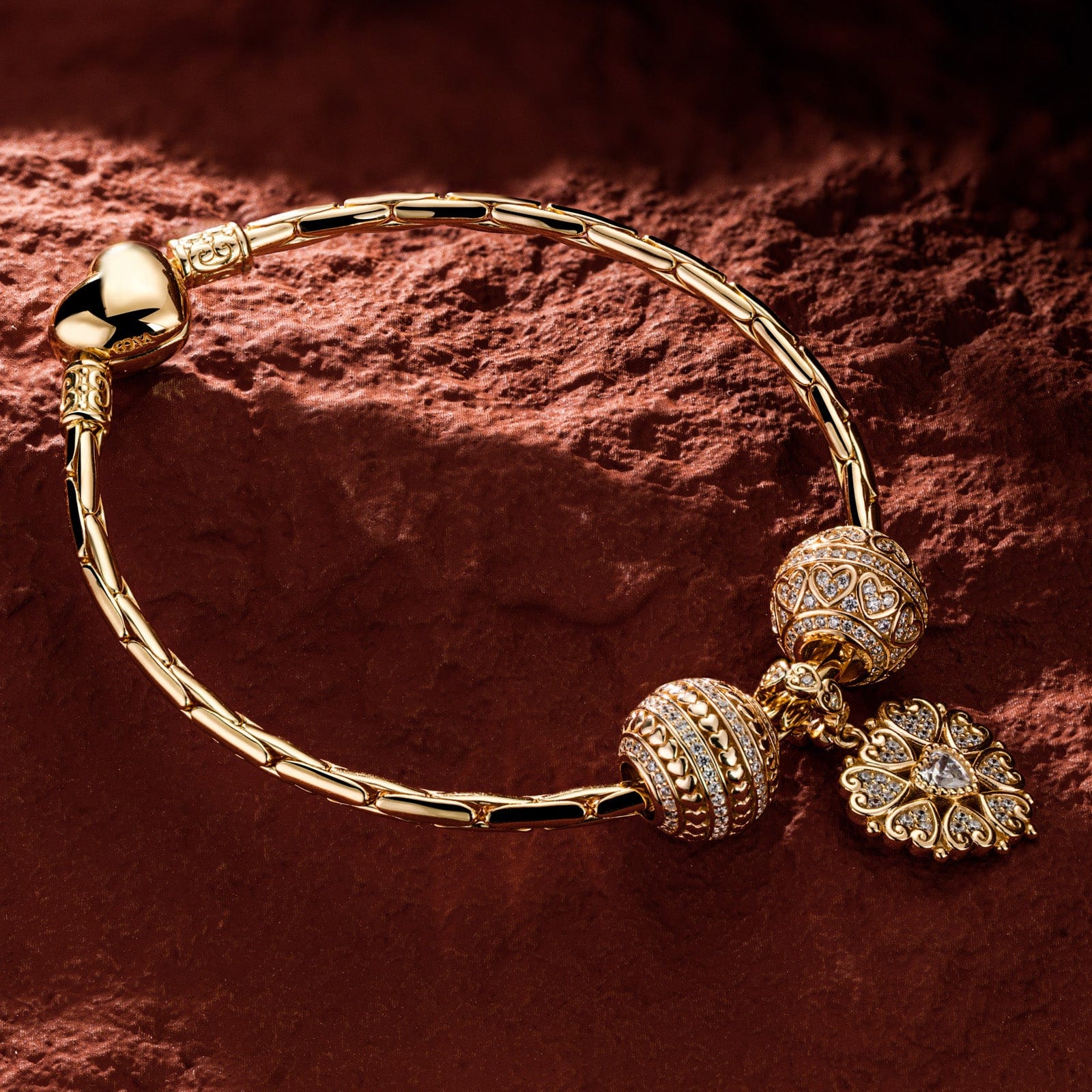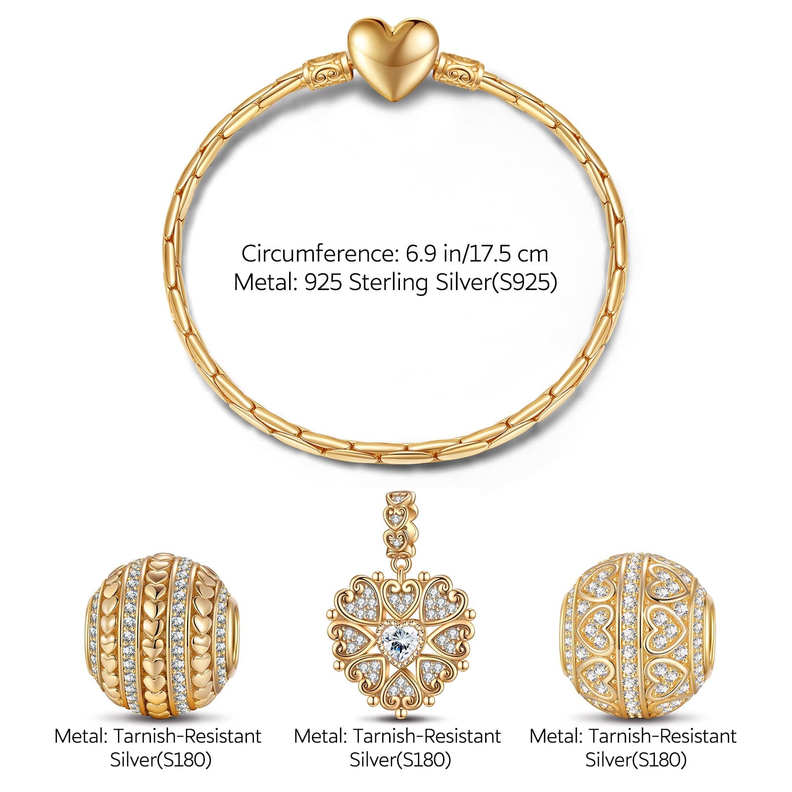 Sterling Silver Year of Love Charms Bracelet Set In 14K Gold Plated