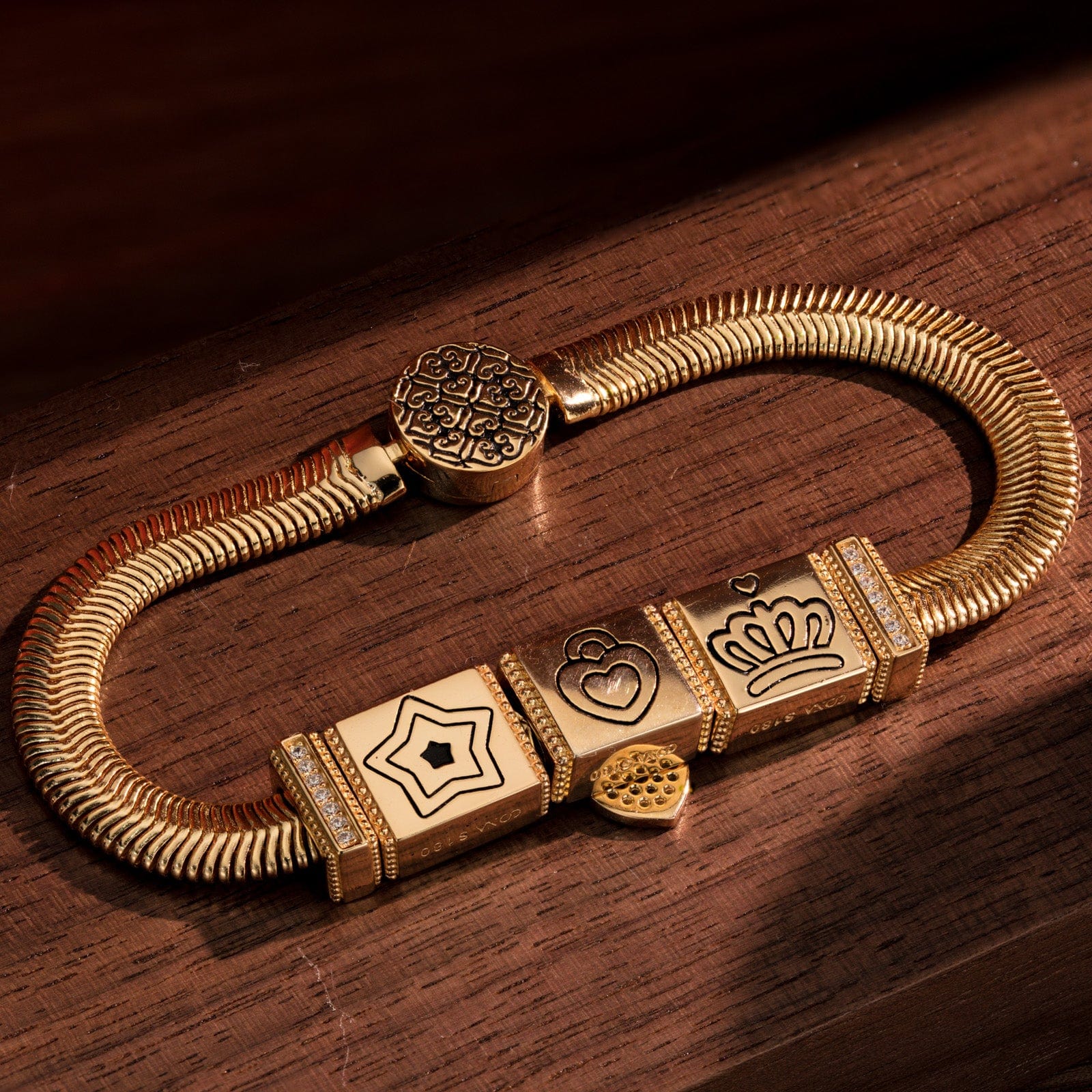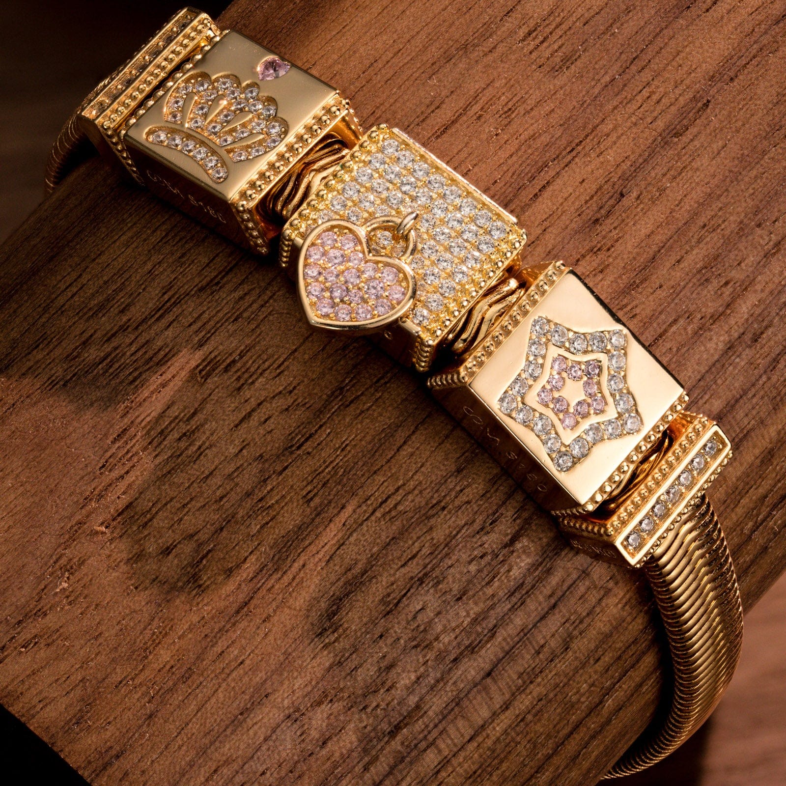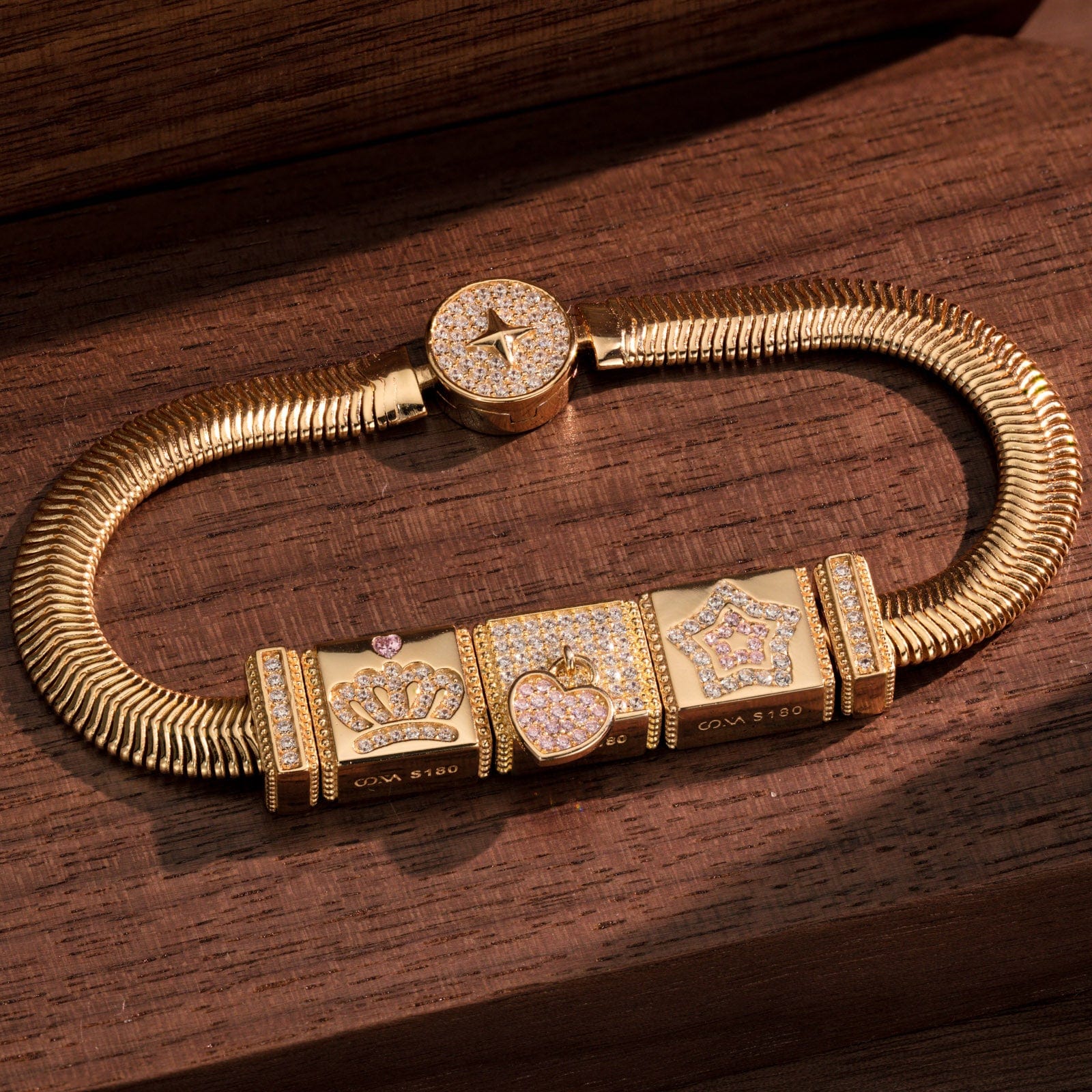 Sterling Silver Stellar Princess Rectangular Charms Bracelet Set In 14K Gold Plated