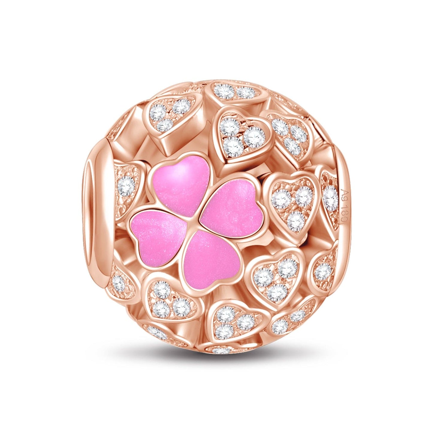 Pink Lucky Clover Tarnish-resistant Silver Charms With Enamel In Rose Gold Plated