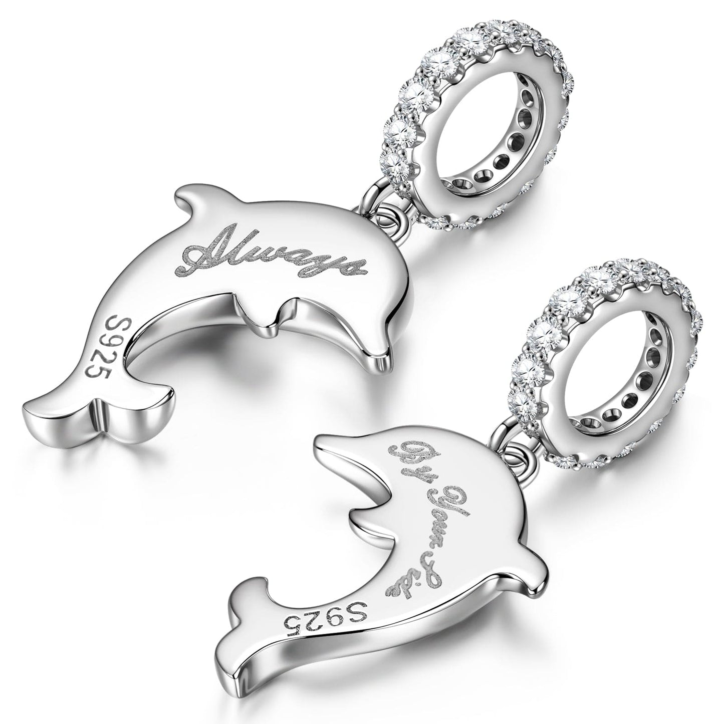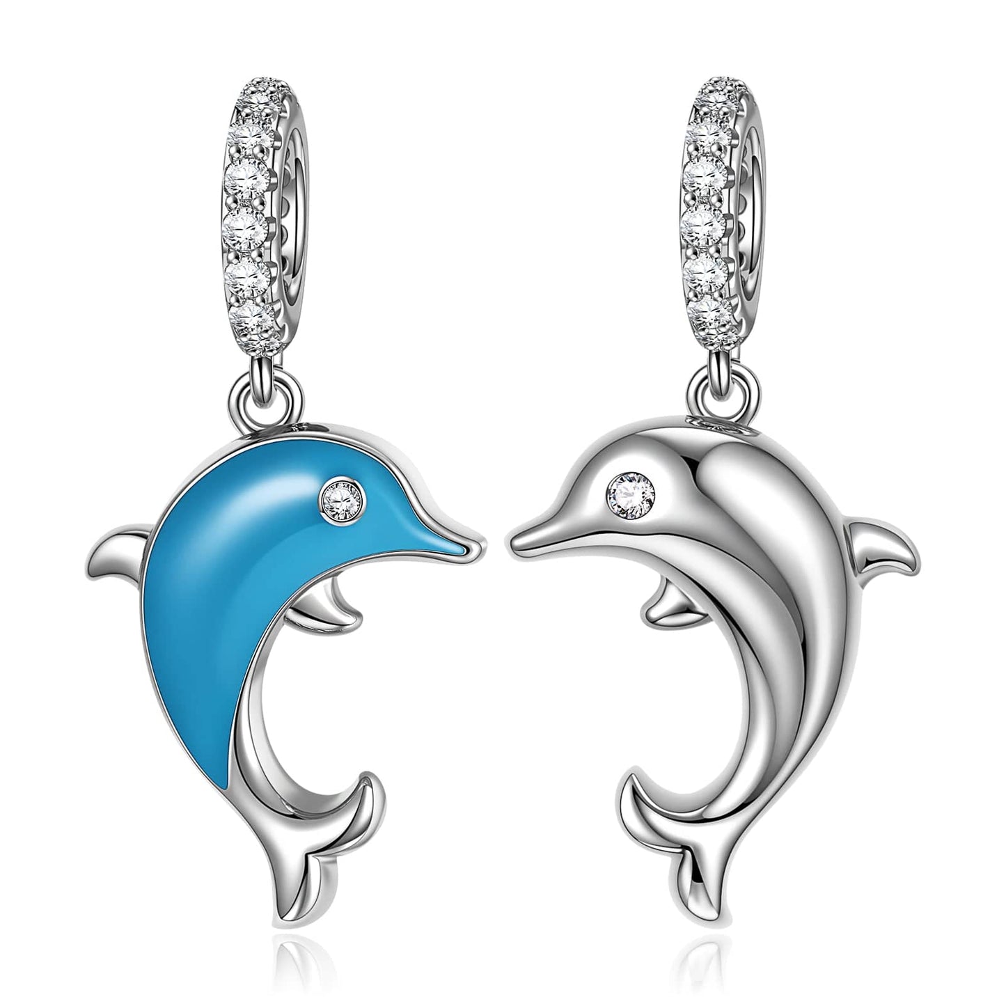 Sterling Silver Leaping Dolphins Charms With Enamel In White Gold Plated