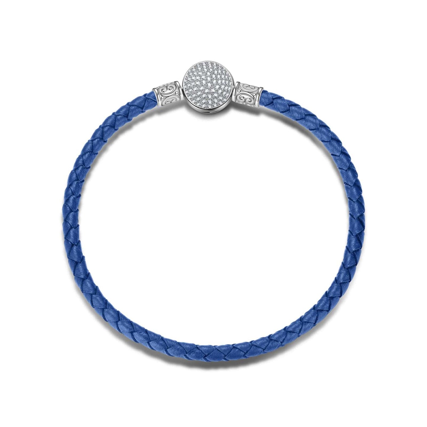 Sterling Silver Universal Blue Leather Bracelet In White Gold Plated