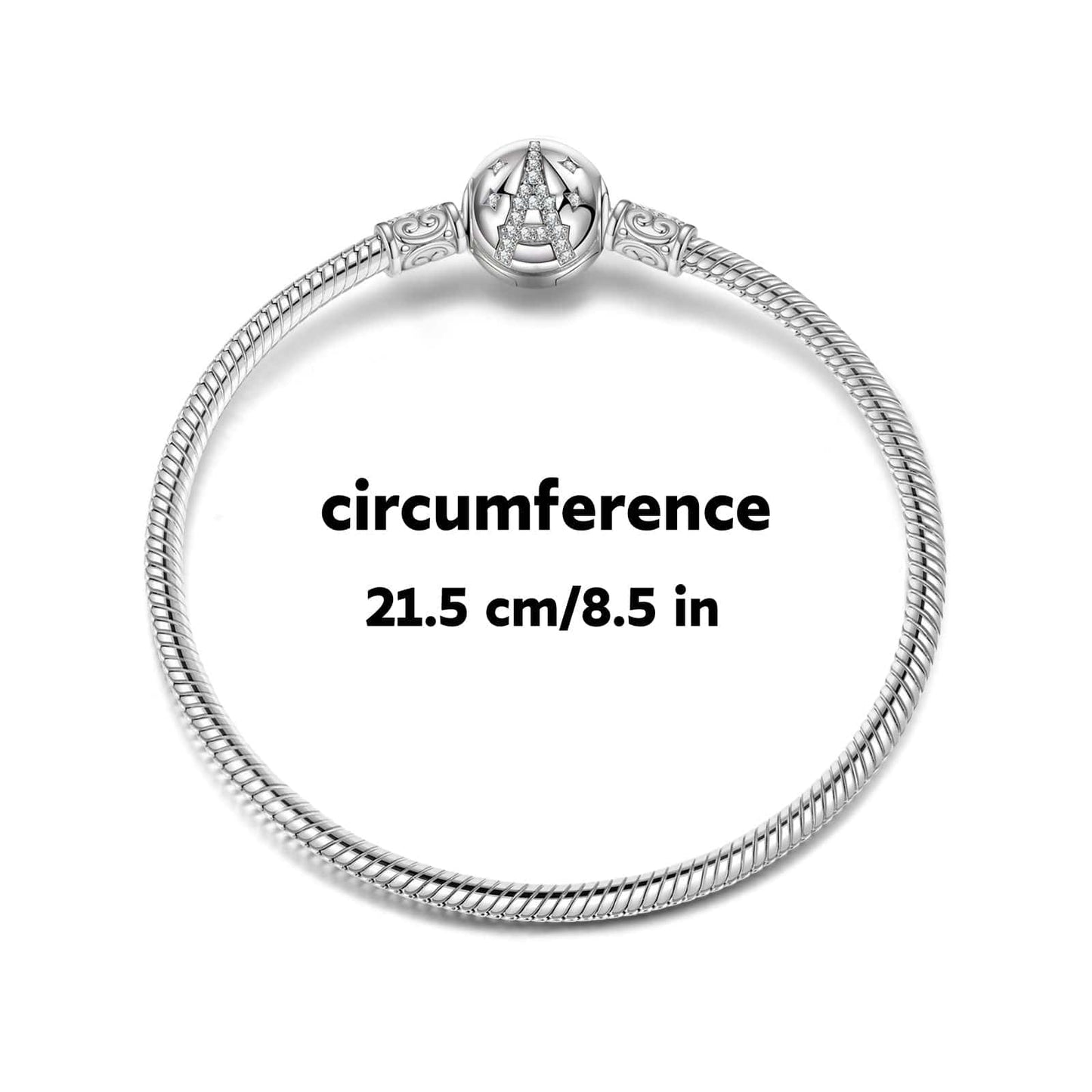 Sterling Silver Eiffel Tower Snake Chain Bracelet In White Gold Plated