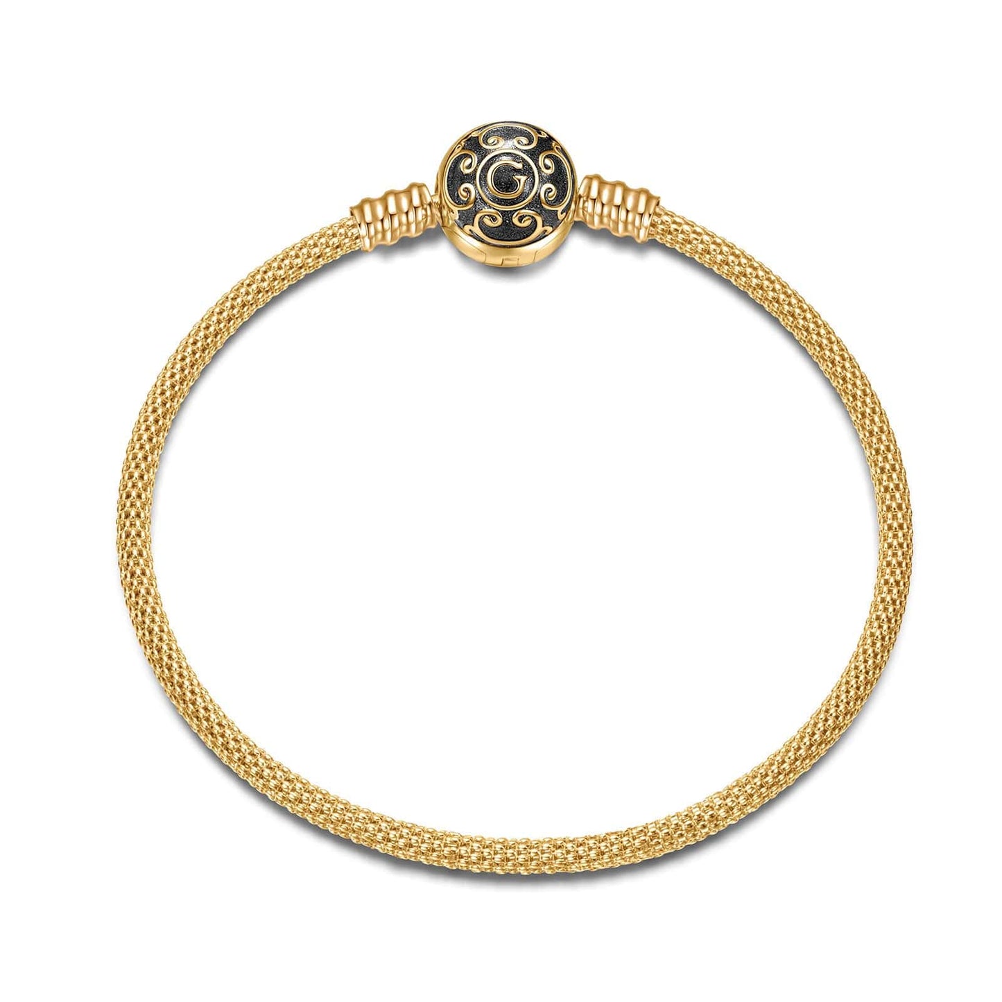 Sterling Silver Universal Mesh Bangle Bracelet With Enamel In 14K Gold Plated