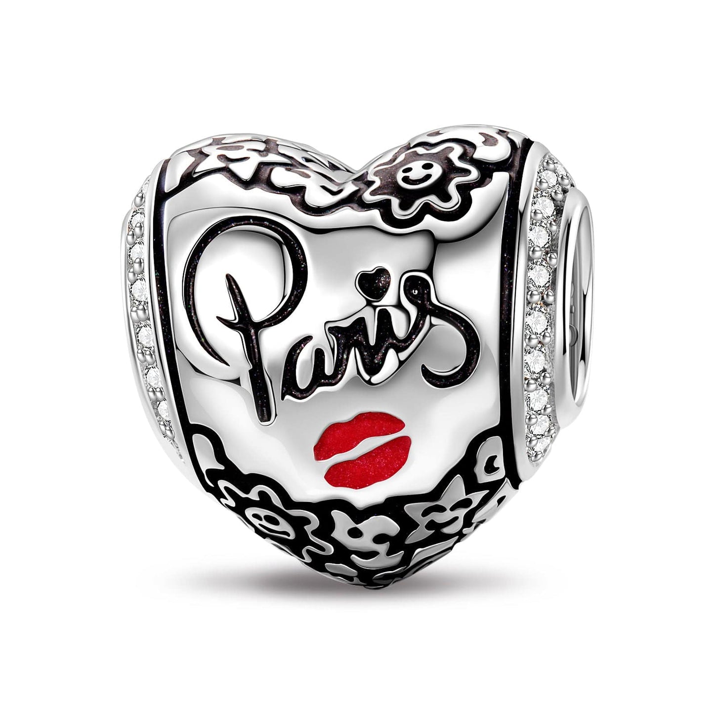 Kiss in Paris Tarnish-resistant Silver Charms With Enamel In White Gold Plated