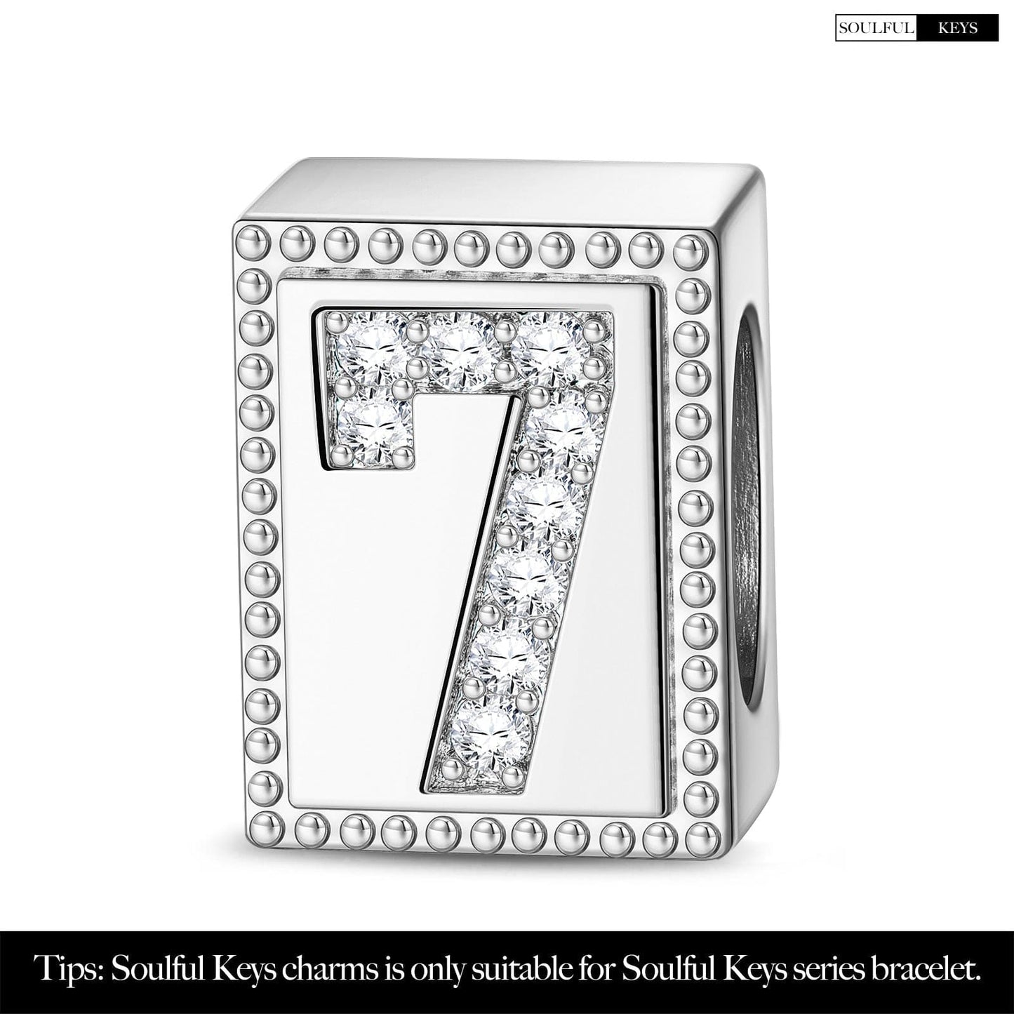 Number Seven Tarnish-resistant Silver Rectangular Charms In White Gold Plated