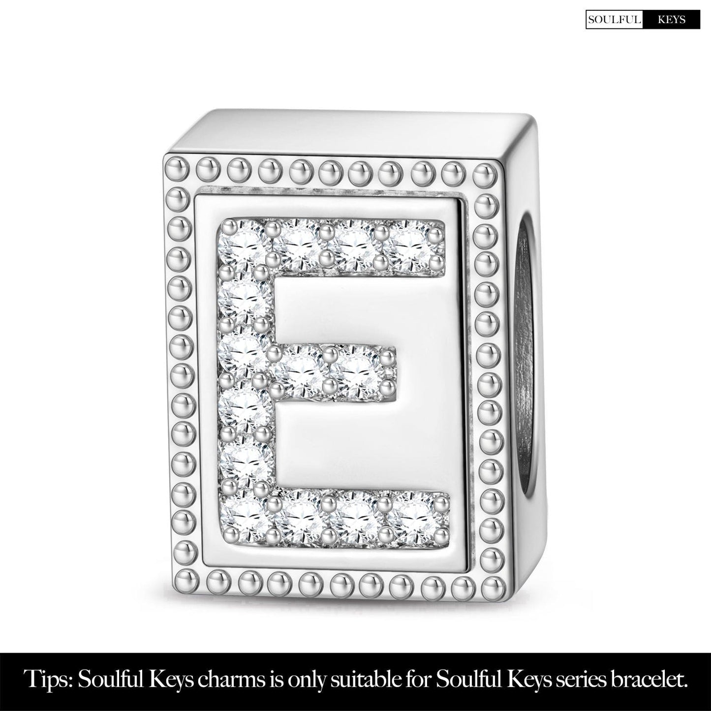Letter E Tarnish-resistant Silver Rectangular Charms In White Gold Plated