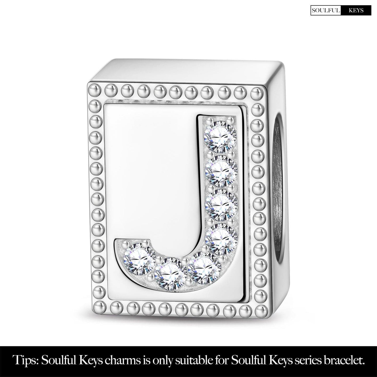 Letter J Tarnish-resistant Silver Rectangular Charms In White Gold Plated