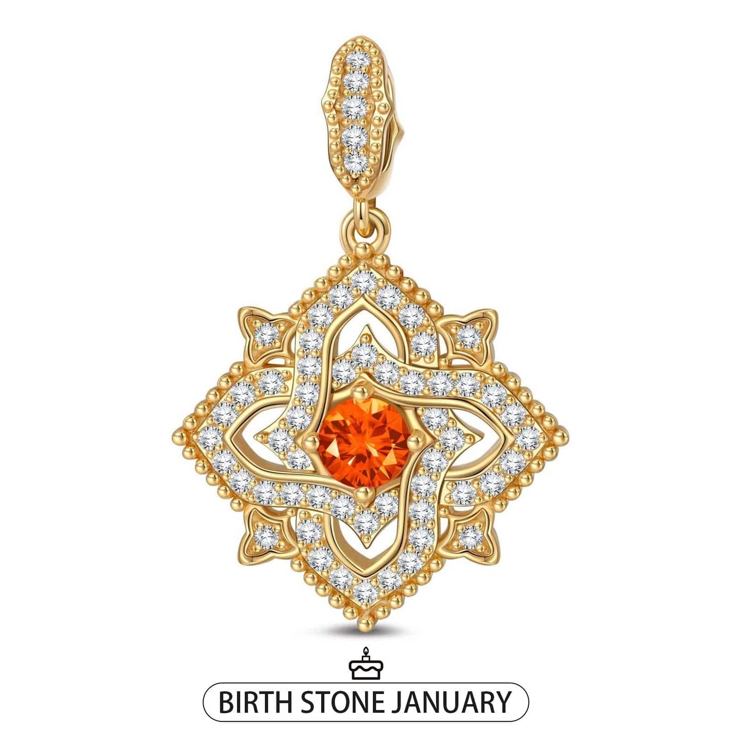 Quatrefoil Rose January Birthstone Tarnish-resistant Silver Charms In 14K Gold Plated