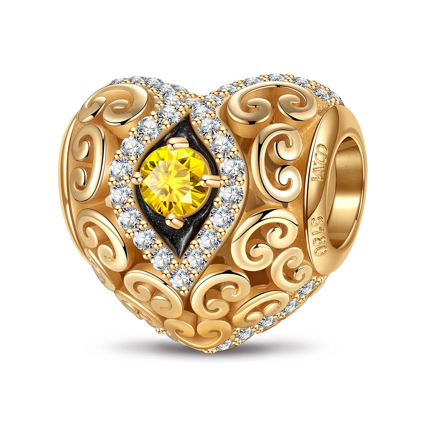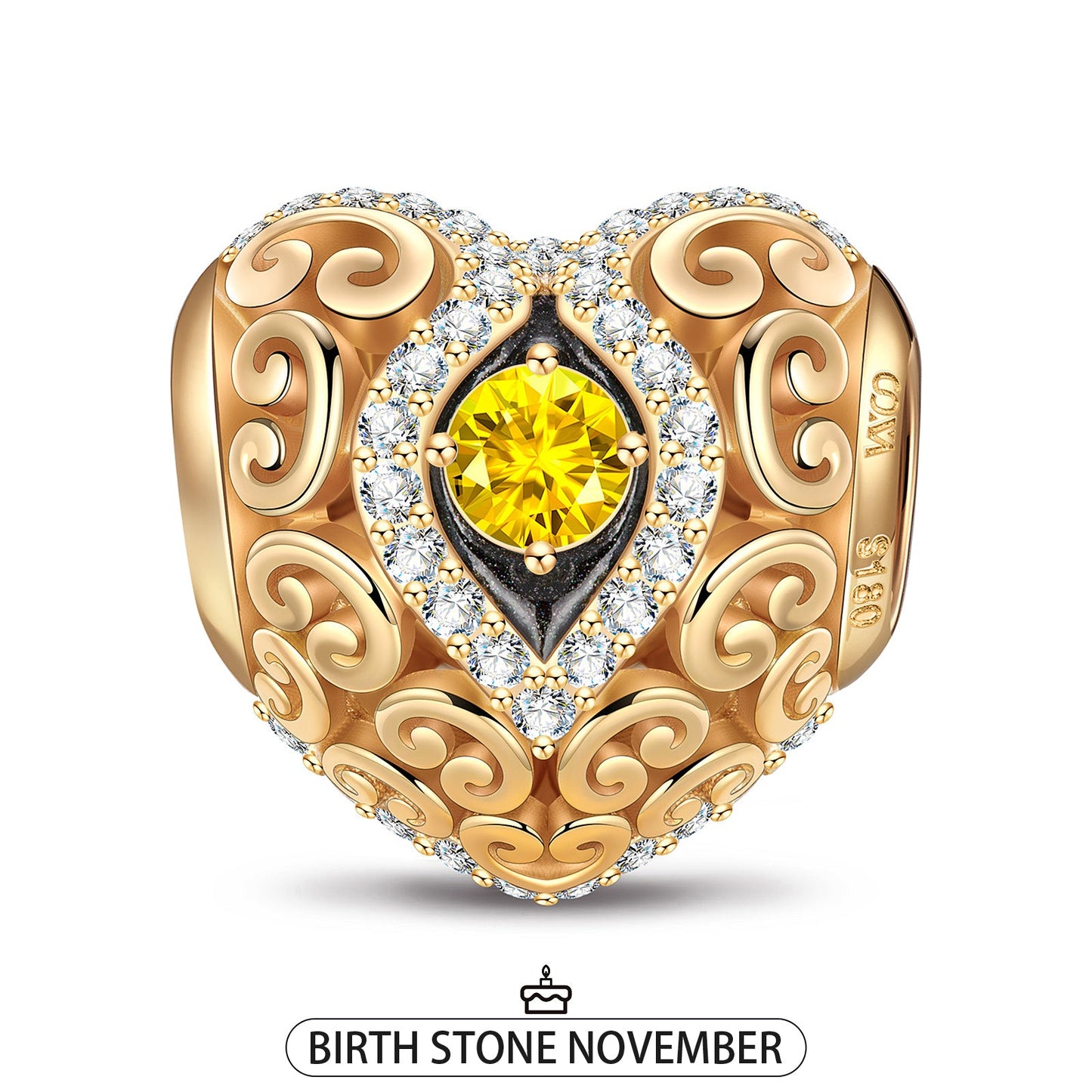 Heart of Grace November Birthstone Tarnish-resistant Silver Charms With Enamel In 14K Gold Plated