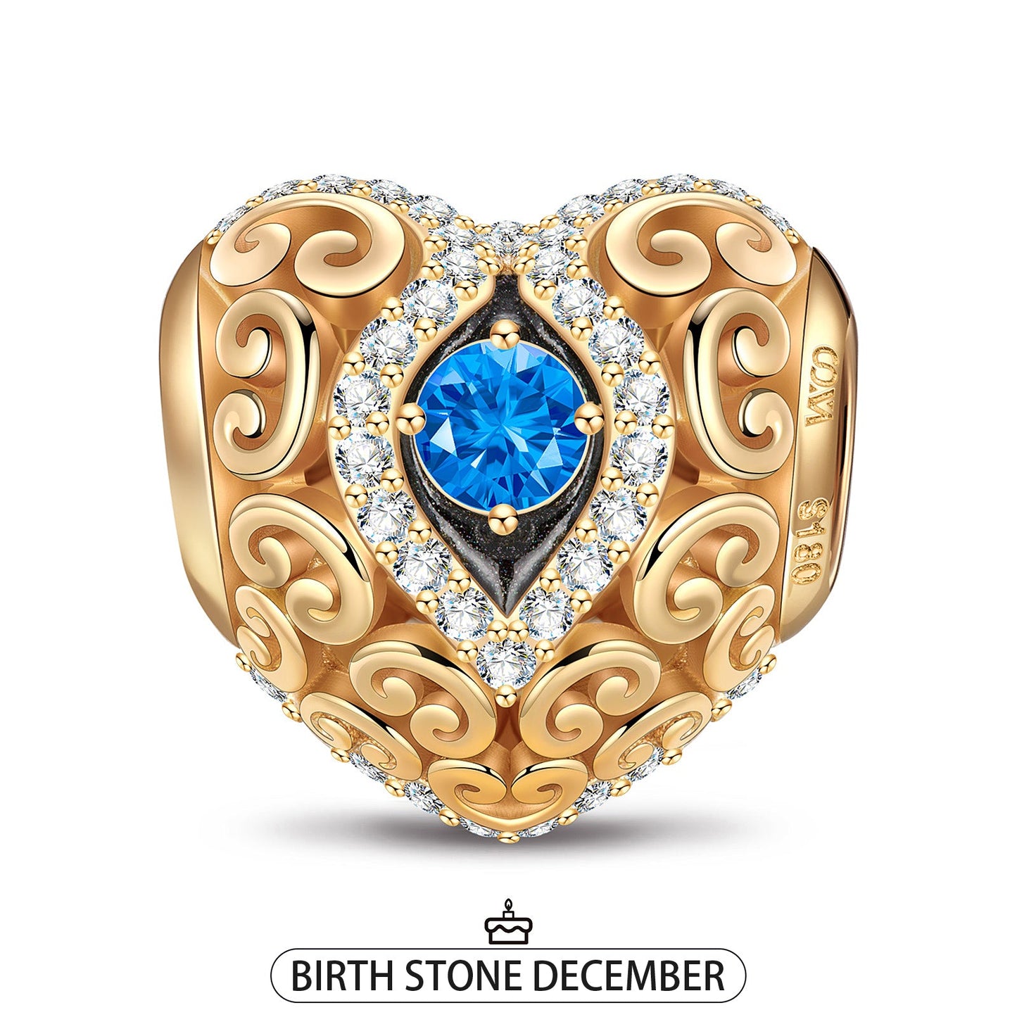 Heart of Grace December Birthstone Tarnish-resistant Silver Charms With Enamel In 14K Gold Plated