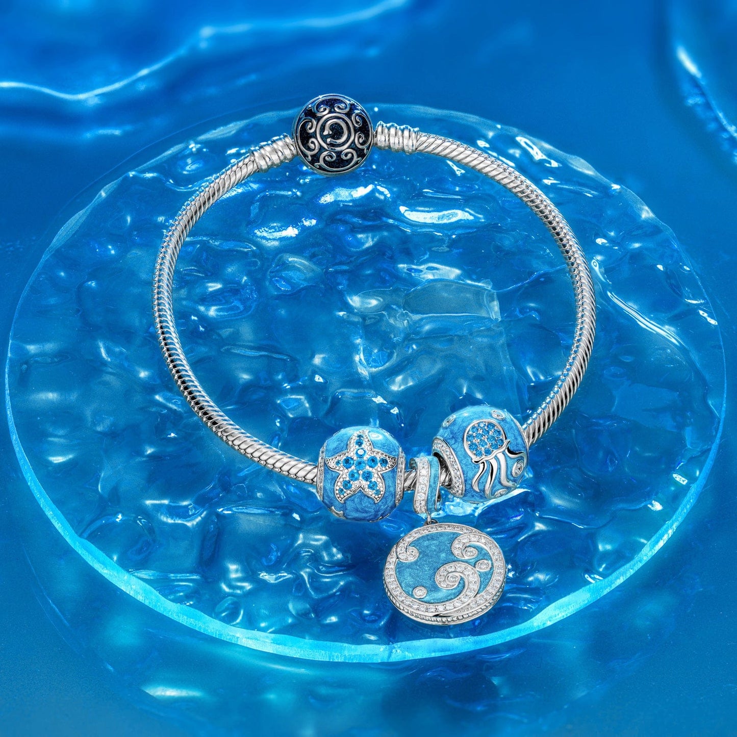 Design: Starfish. Embrace playfulness with our star charm and stay centered with our blue sea charm. Let the ocean's beauty and tranquility accompany you wherever you go.