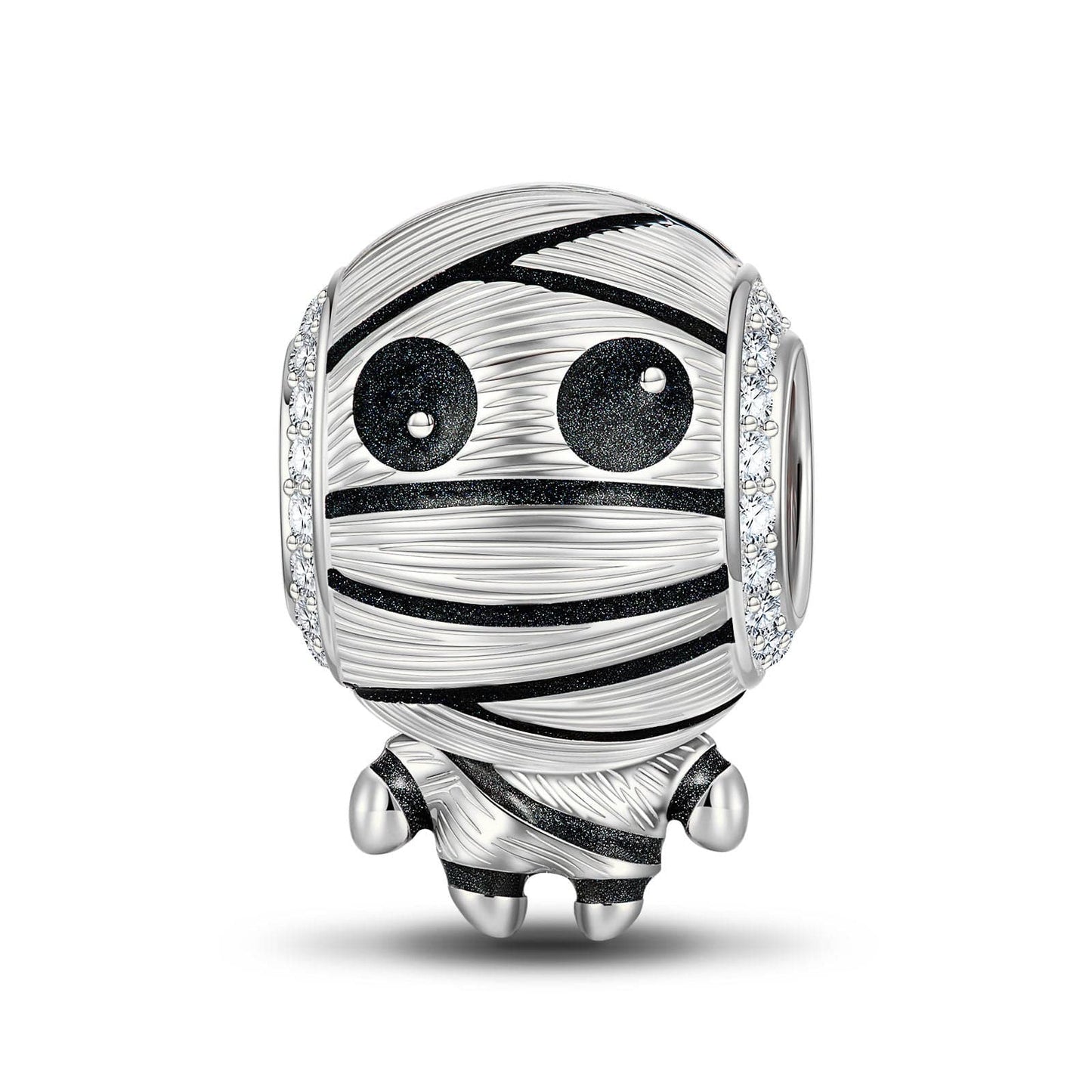 Design: Mummy. This little wrapped-up wonder will add a touch of whimsy to your accessories collection. With its playful smile and googly eyes, this charming charm is sure to bring a smile to your face. Perfect for adding some spooky-fun to your style, grab yours today and let the good times unwrap!
