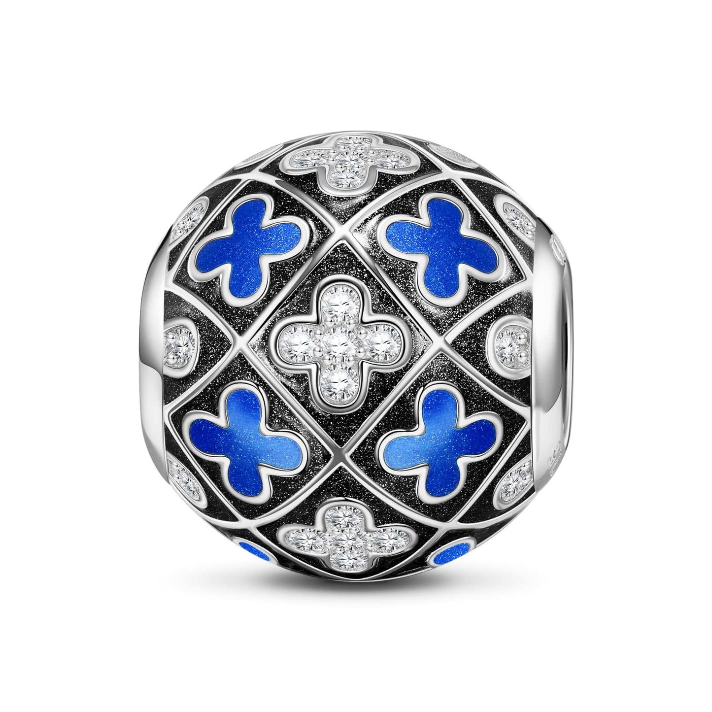 Design: The design inspiration comes from the graphic design of the four-leaf pattern. The round beads are lined with the four-leaf flower pattern combined with the effect of inlaid gemstones. The arrangement is classic and orderly. The color embellishment is just right with the dripping oil of lavender purple and the effect of flashing sand. The retro beauty is combined with the modern exquisite effect. , has decorative aesthetics, and the style endows the implied effect of happiness and happiness.