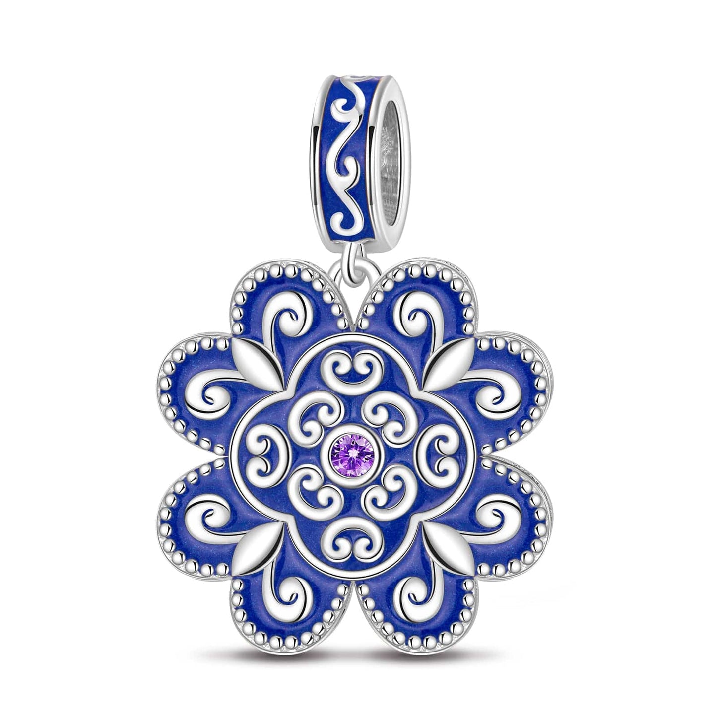 Sterling Silver Blue Crush Charms With Enamel In White Gold Plated