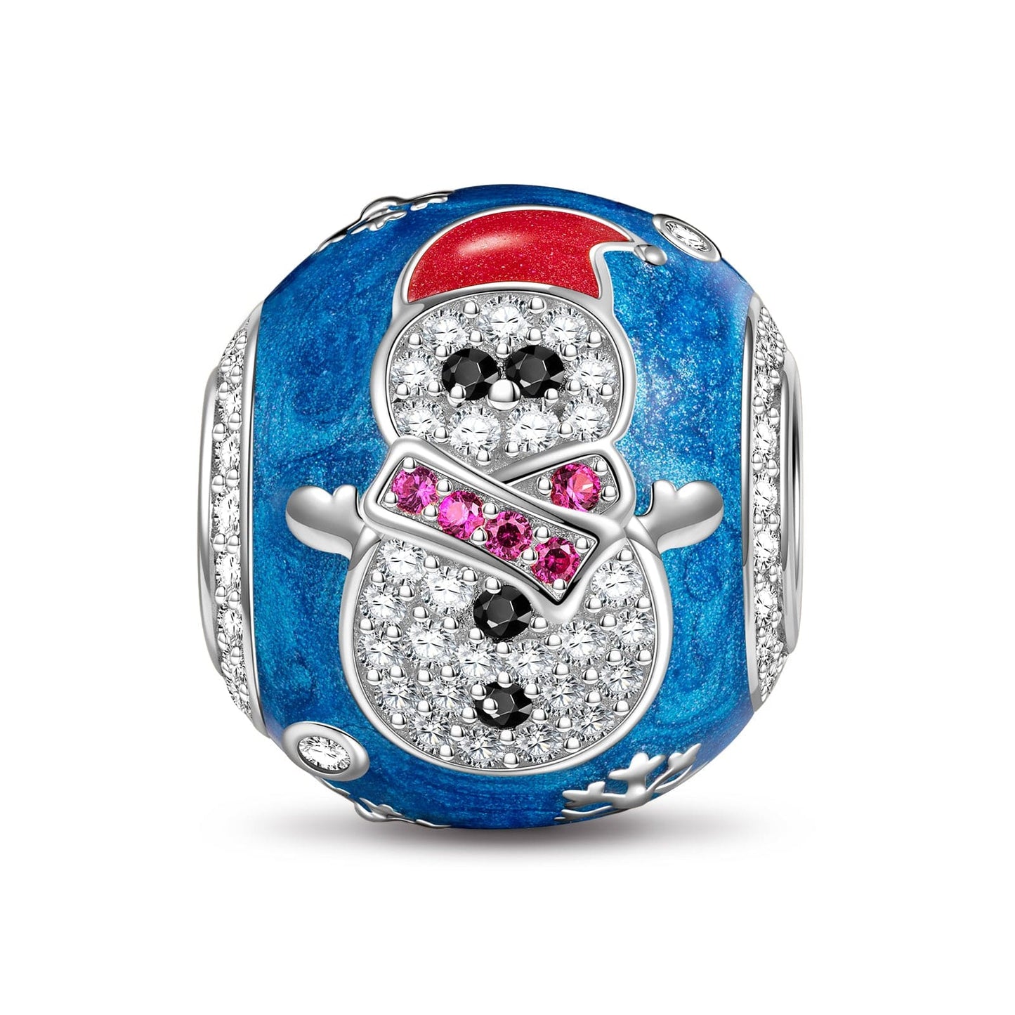 Sterling Silver Blue Snowbaby Charms With Enamel In White Gold Plated