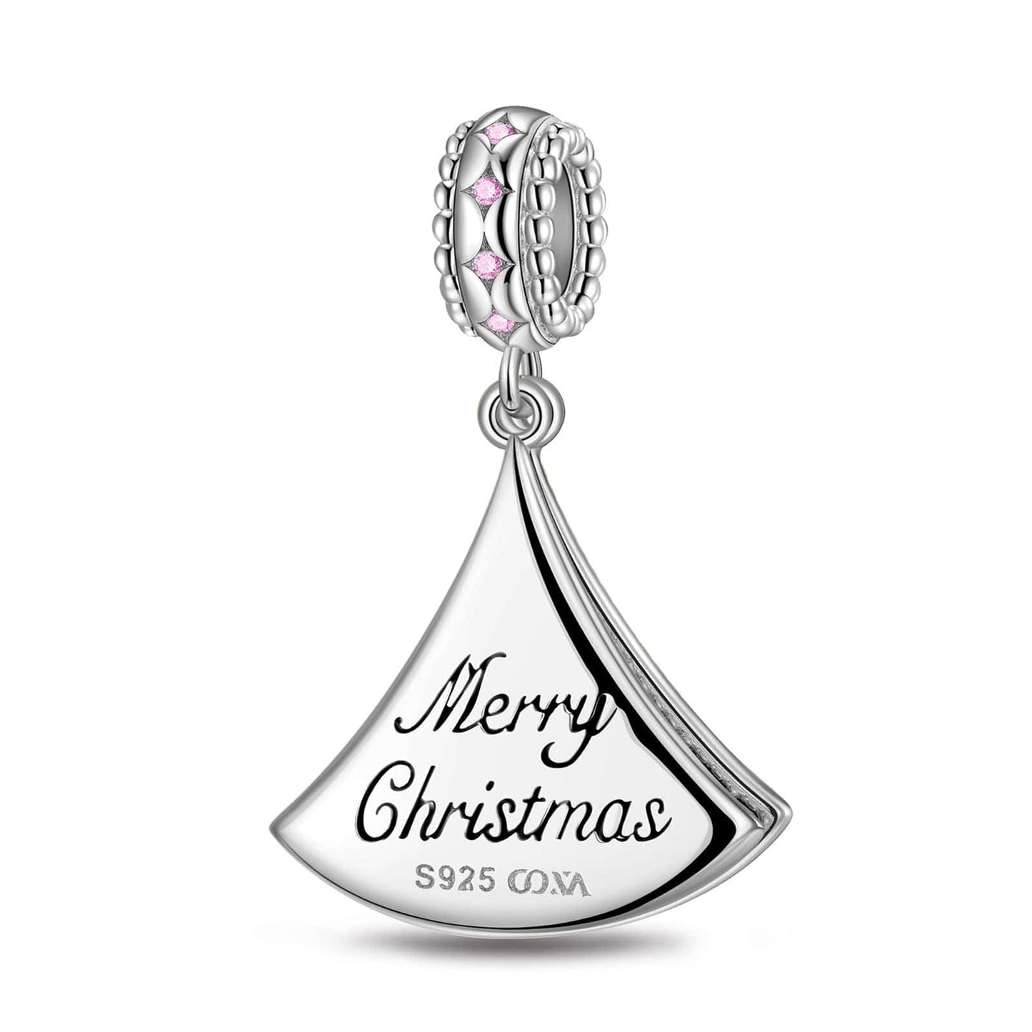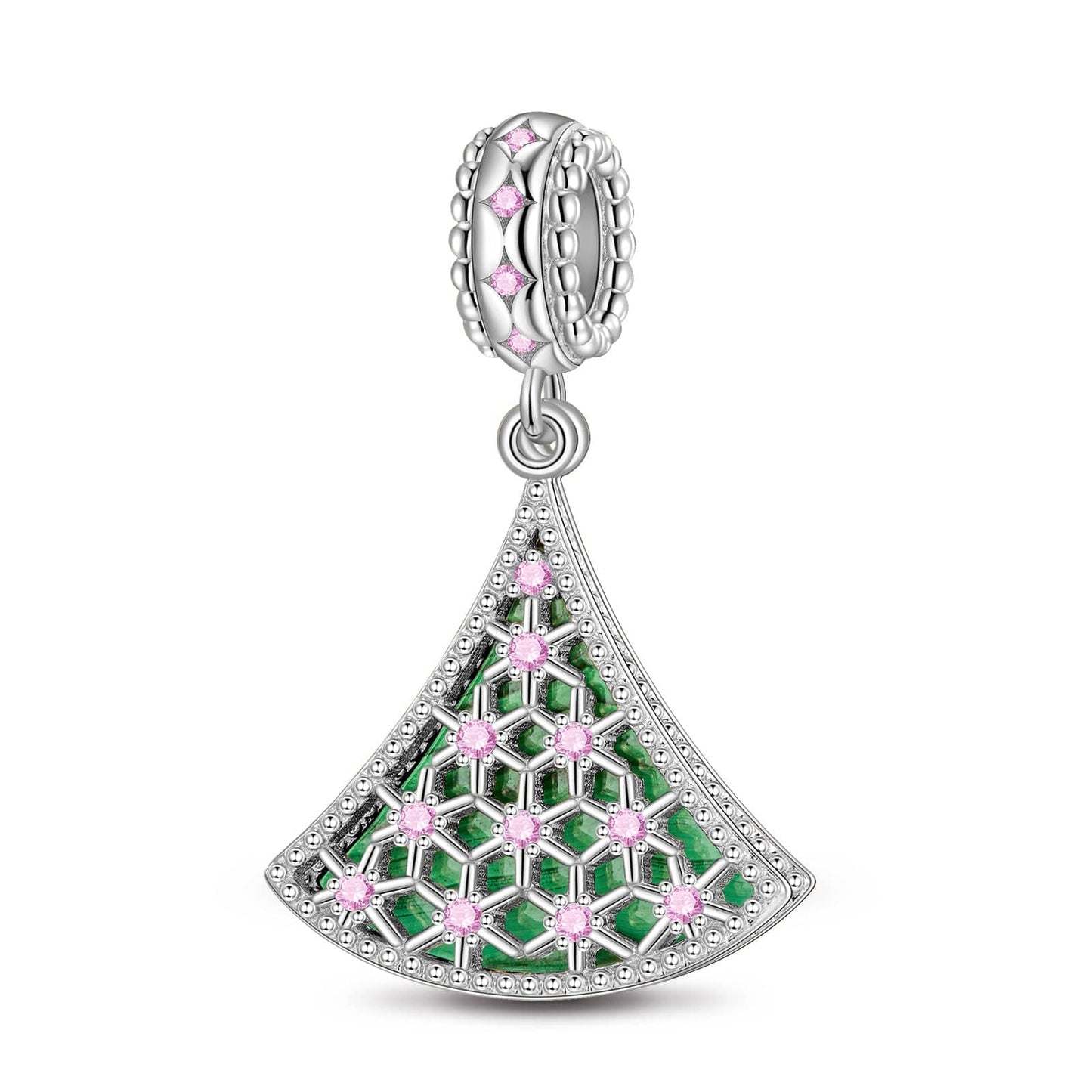 Sterling Silver Green Lucky Christmas Tree Dangle Charms With Enamel In White Gold Plated