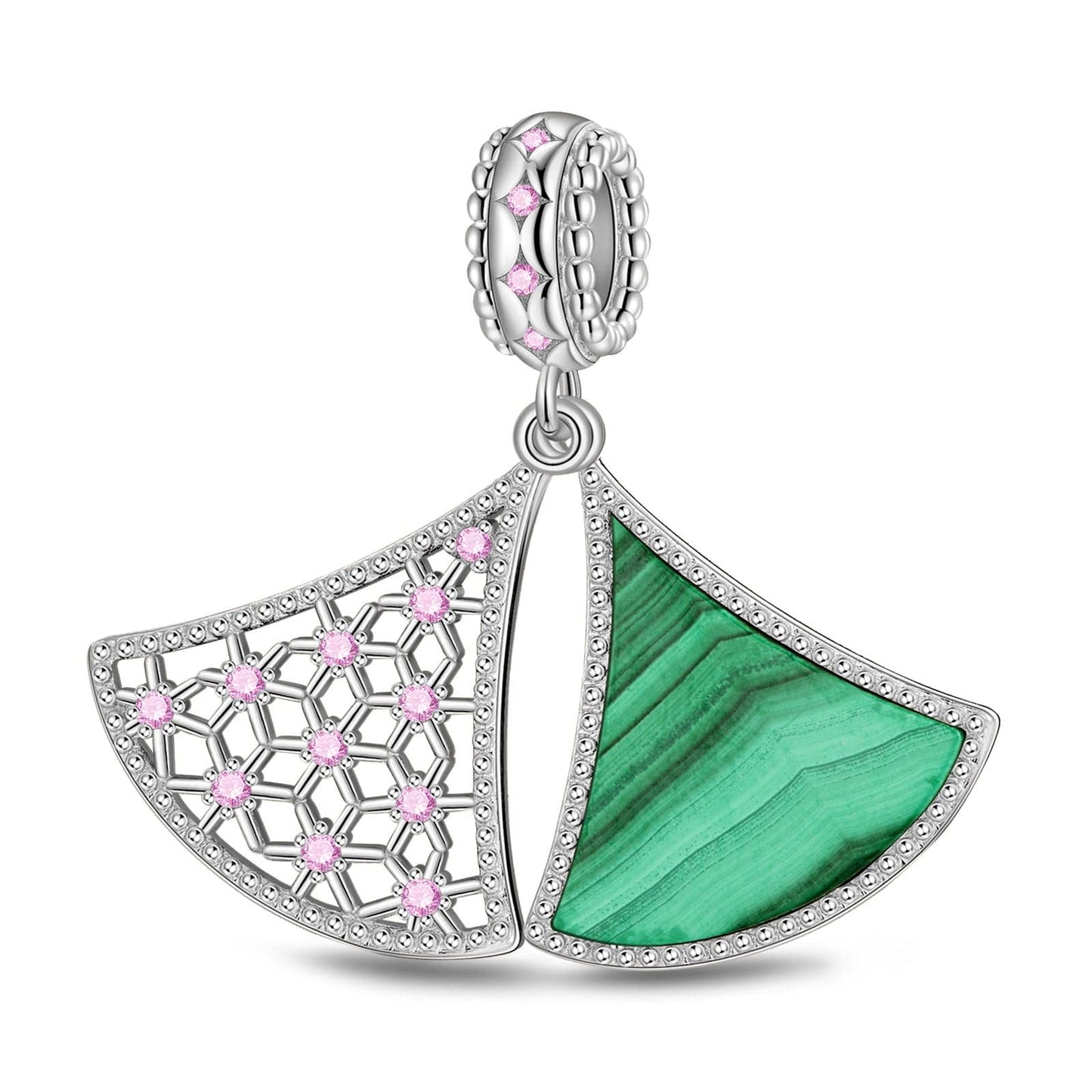 Design: The design inspiration is a hangtag designed with Christmas tree elements combined with snowflake elements. On the back is a flat design Christmas tree inlaid with malachite (representing Christmas green). When worn on the hand, the front and rear pieces can swing left and right, that is, snowflakes fall on the Christmas tree. It means romantic Christmas and good wishes.