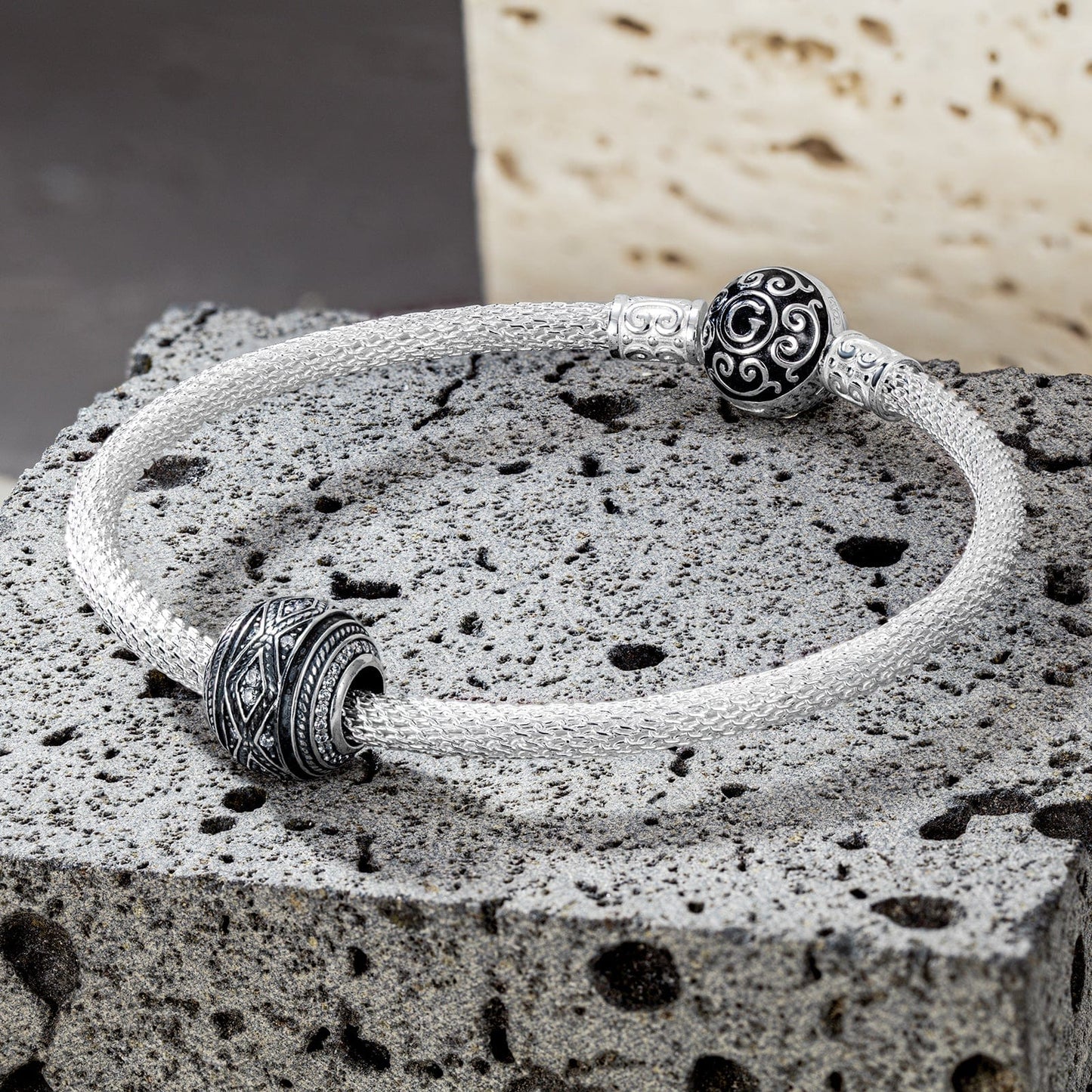 Sterling Silver XL Size Infinite Charms With Enamel In Blackened 925 Sterling Silver Plated For Men