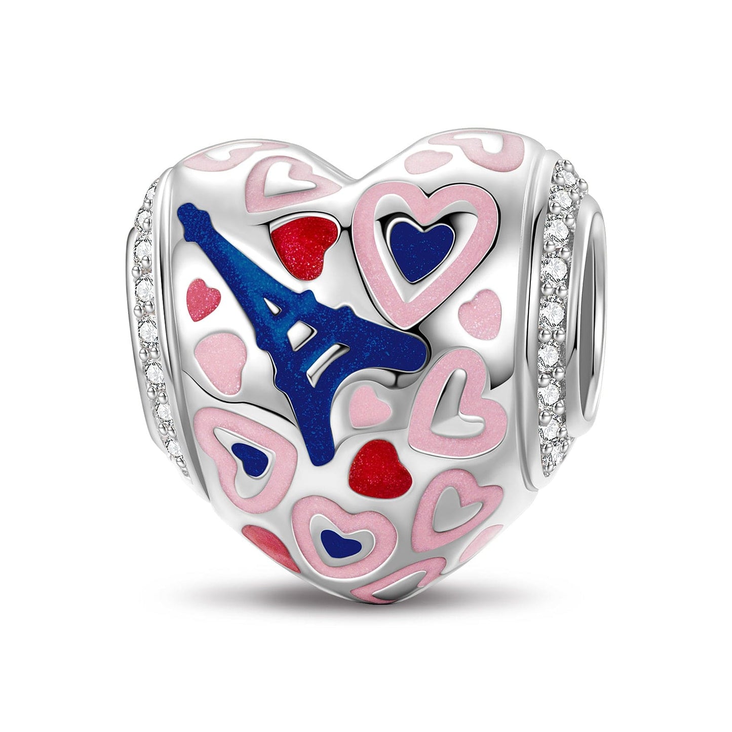 Sterling Silver Romantic Eiffel Charms With Enamel In White Gold Plated