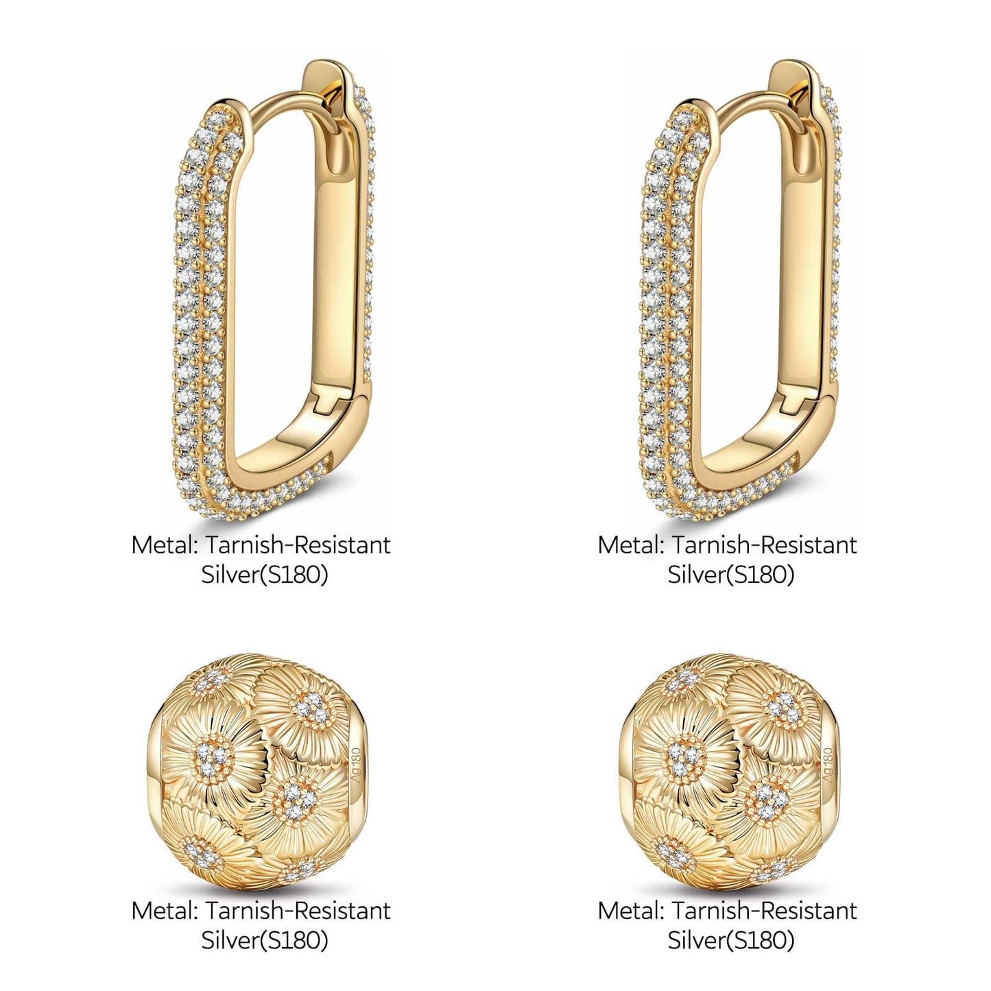 Golden Sunflower Tarnish-resistant Silver Charms Earrings Set with Sterling Silver Ear Post In 14K Gold Plated