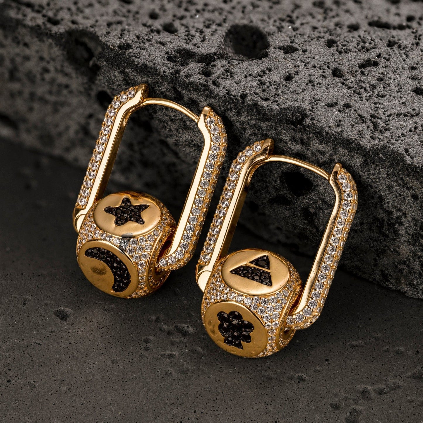 Robot and Light Tarnish-resistant Silver Charms Earrings Set with Sterling Silver Ear Post In 14K Gold Plated