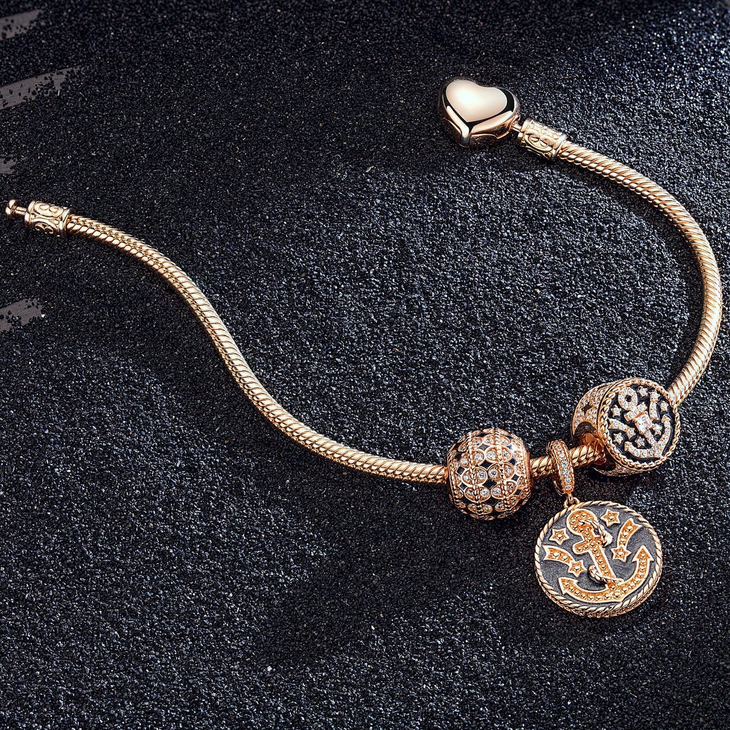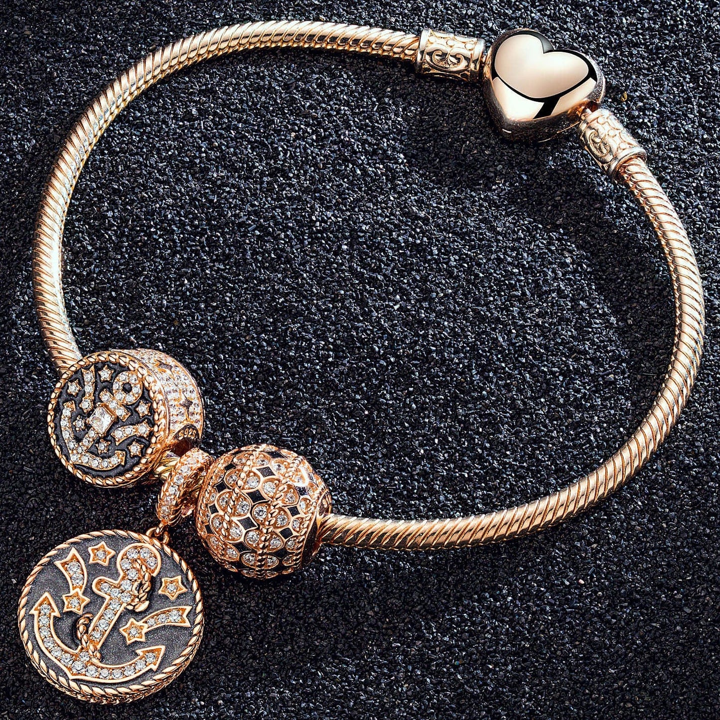 Stars of the Voyage Tarnish-resistant Silver Snake Chain Charms Bracelet Set With Enamel In Rose Gold Plated