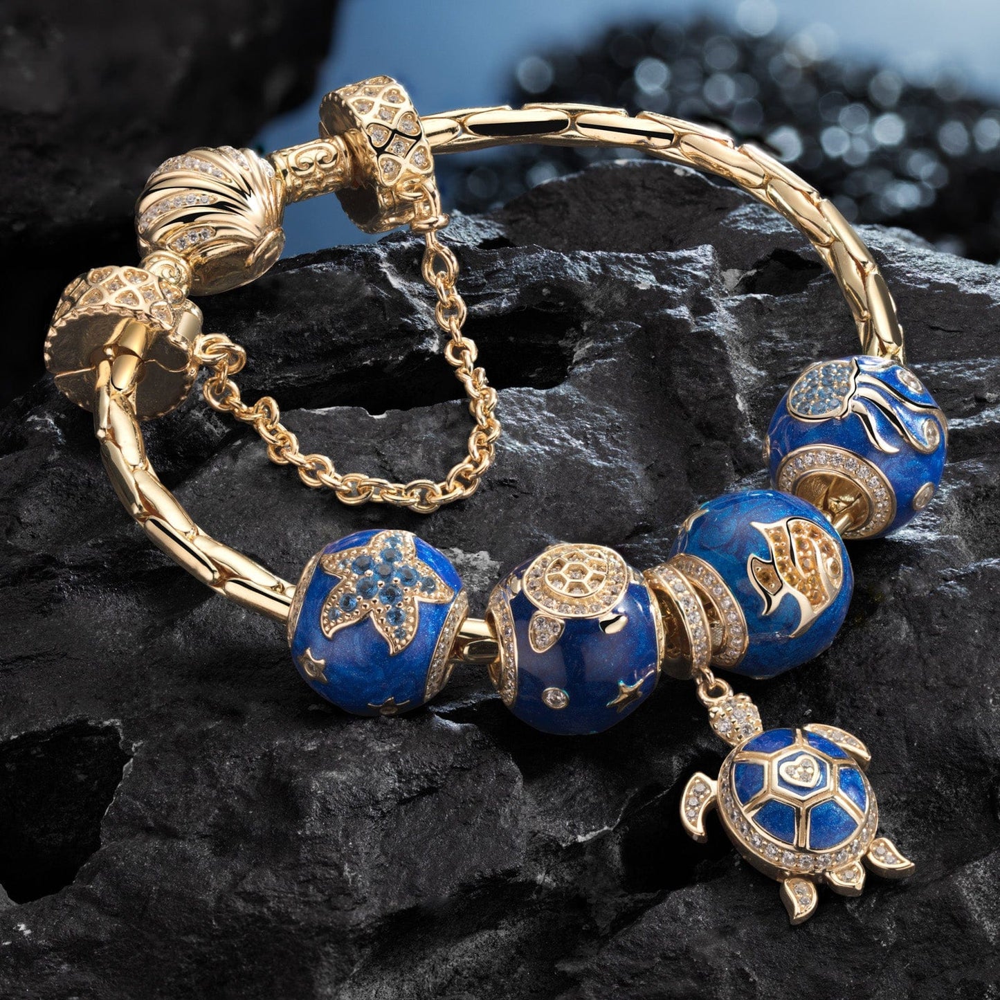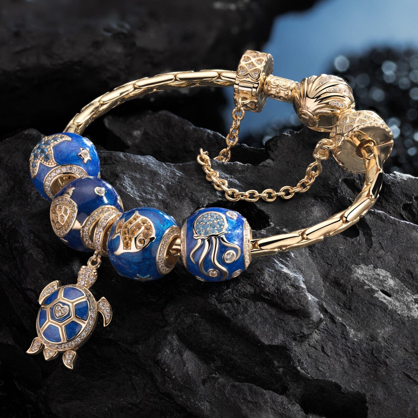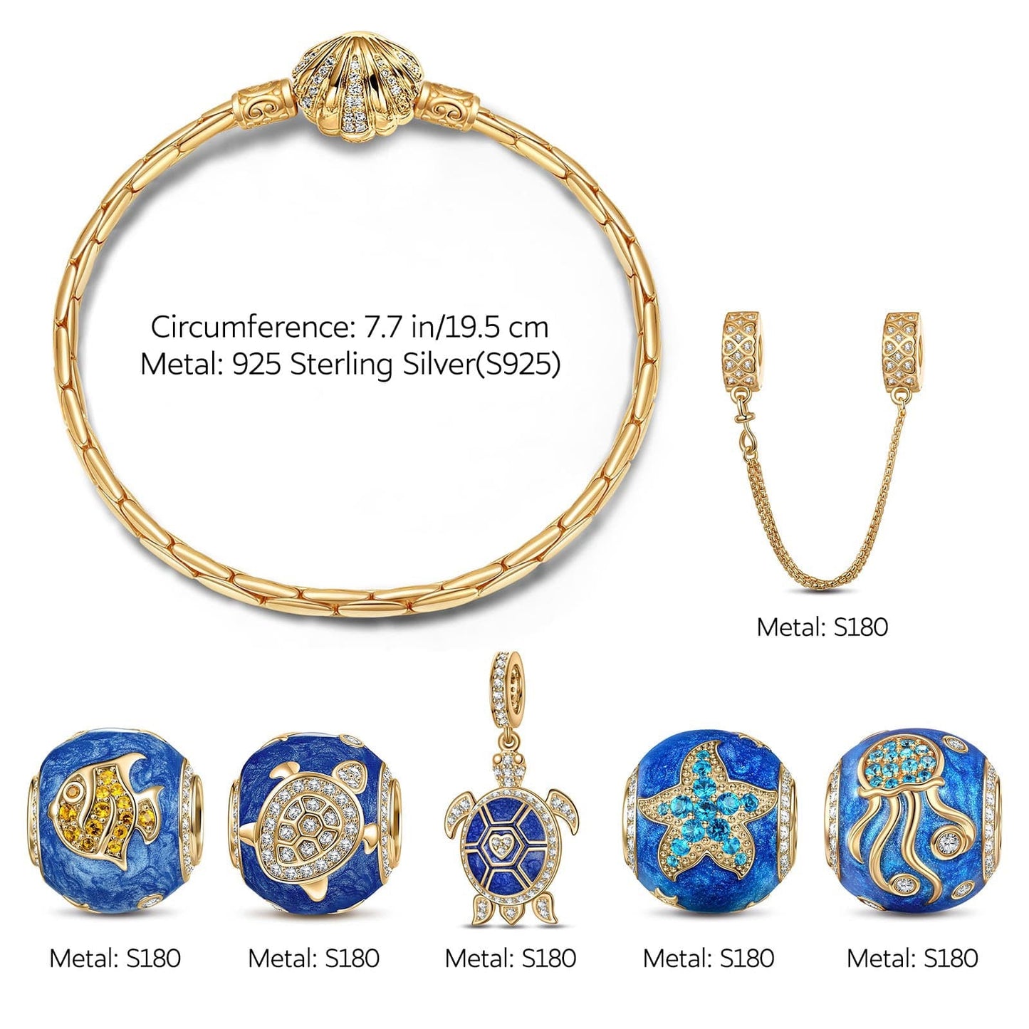 Sterling Silver Marine Animal Charms Bracelet Set With Enamel In 14K Gold Plated