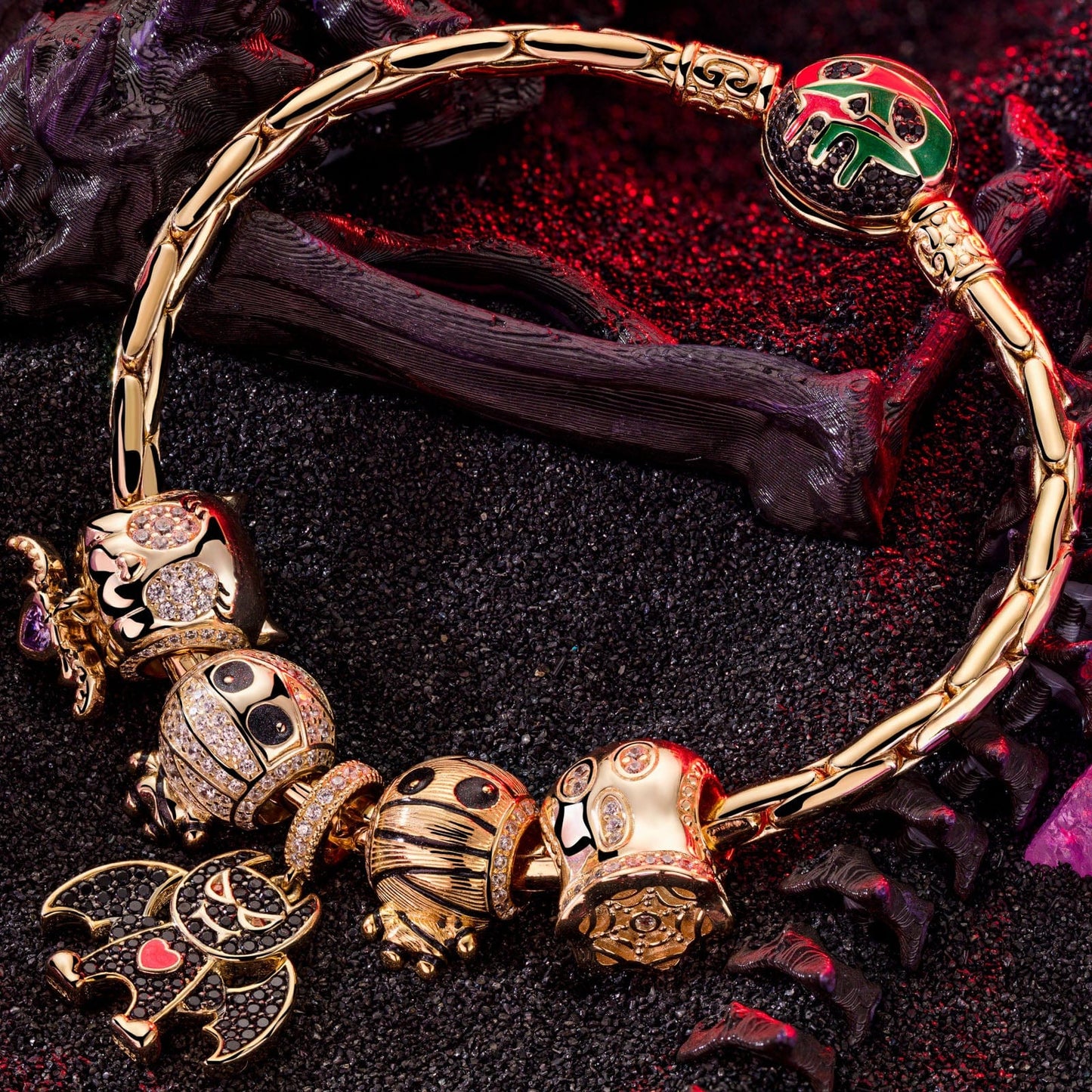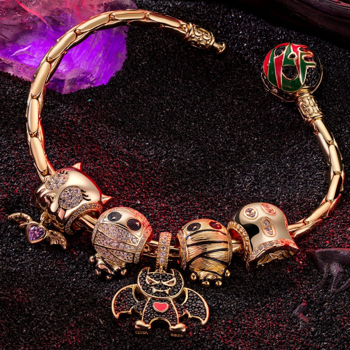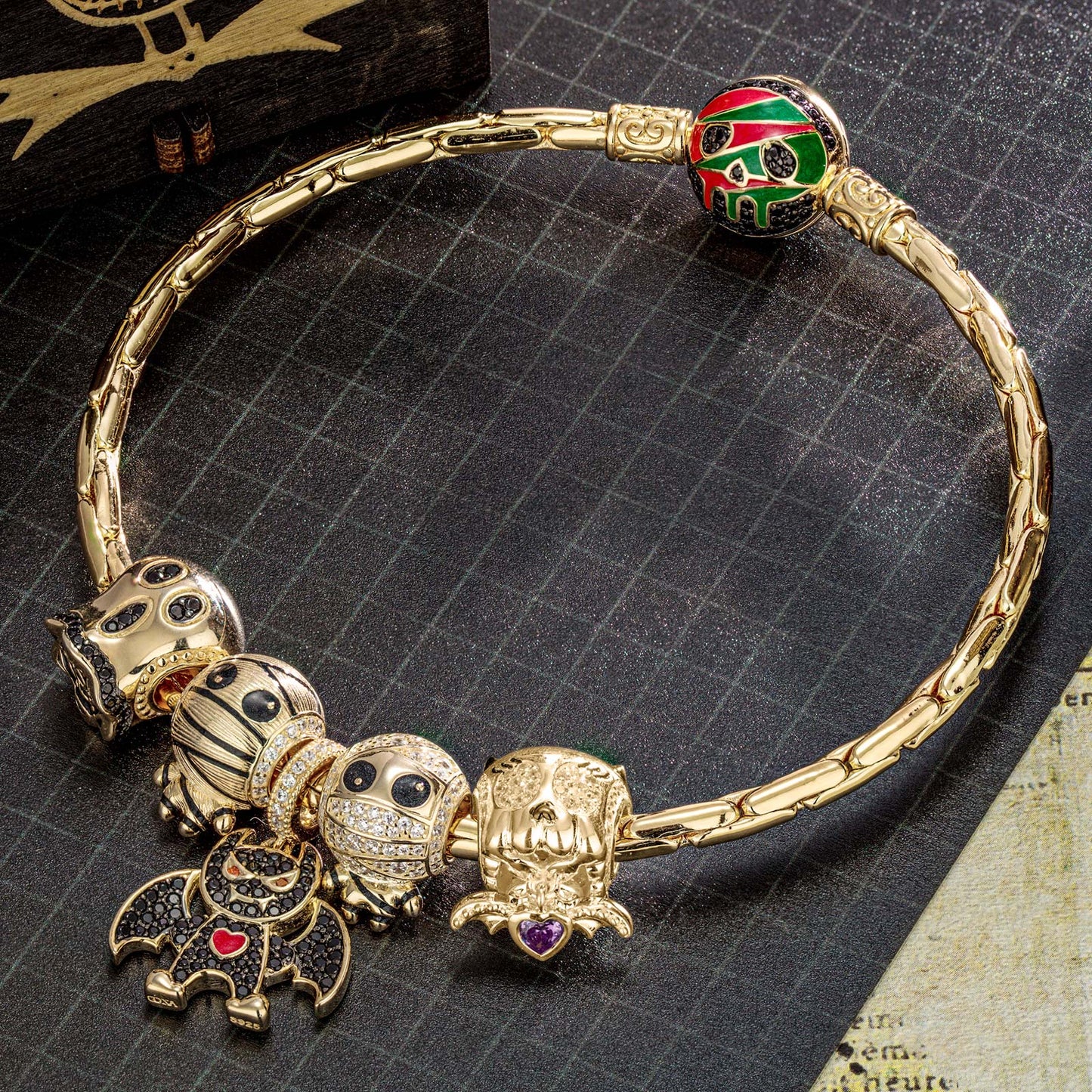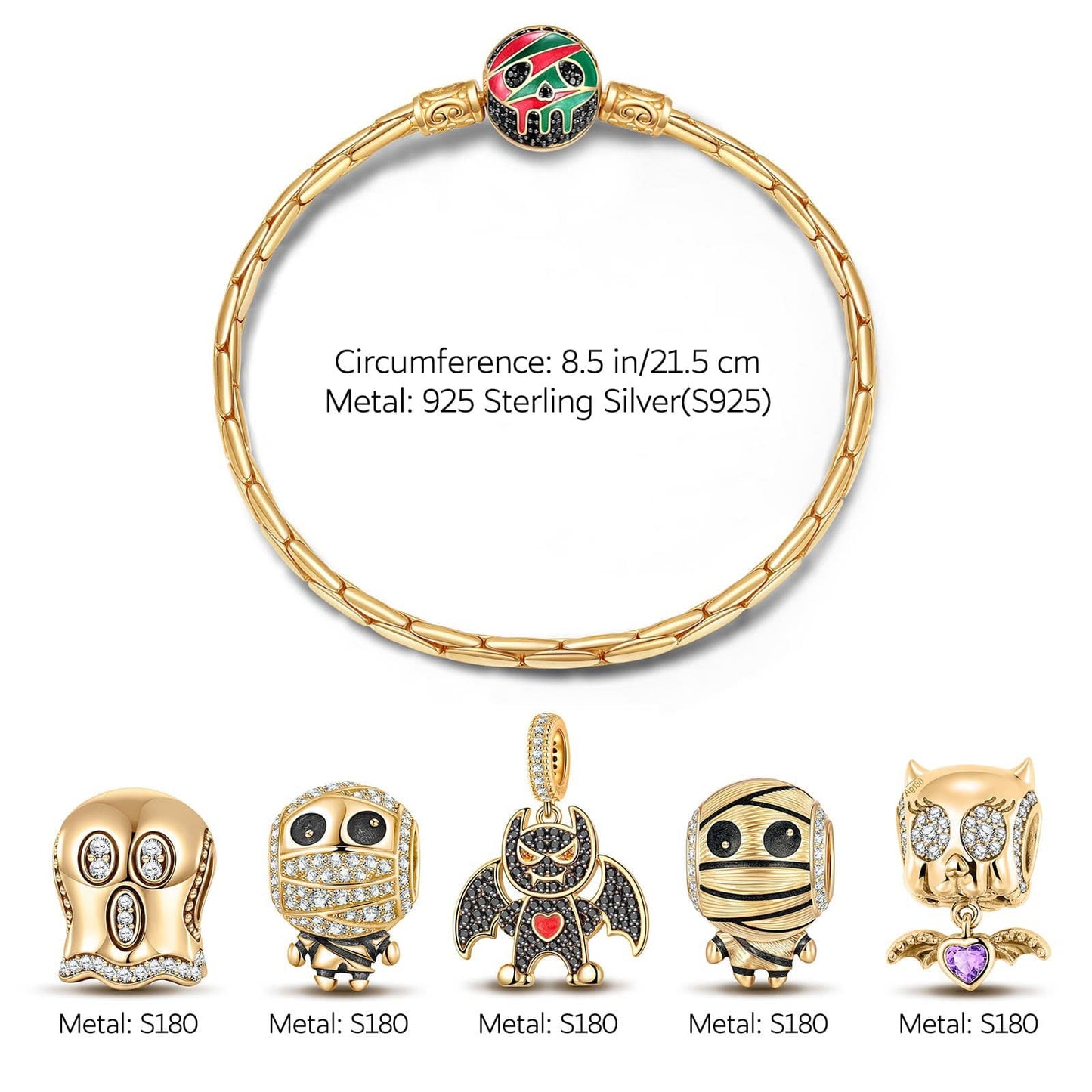 Sterling Silver Halloween Monster Family Charms Bracelet Set With Enamel In 14K Gold Plated