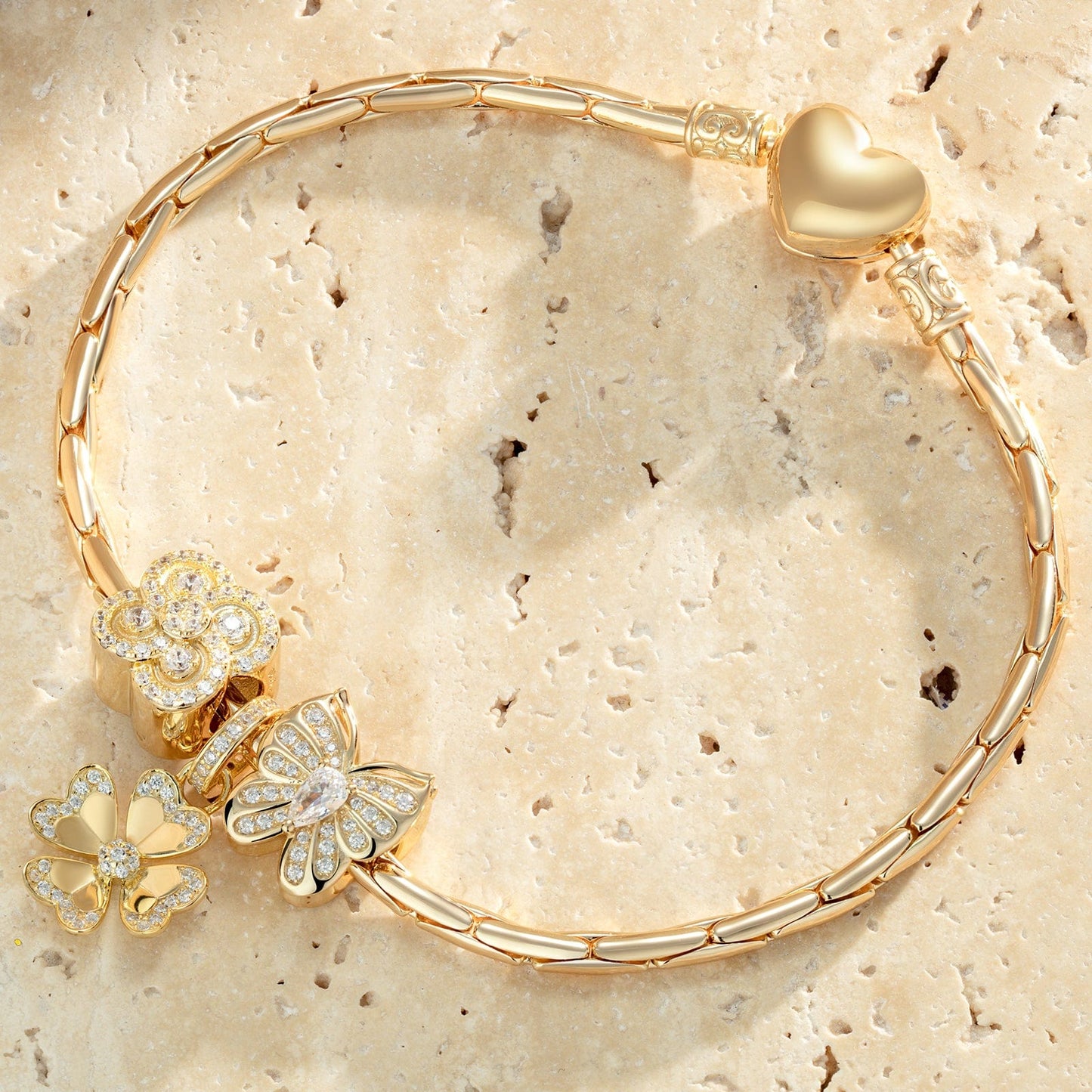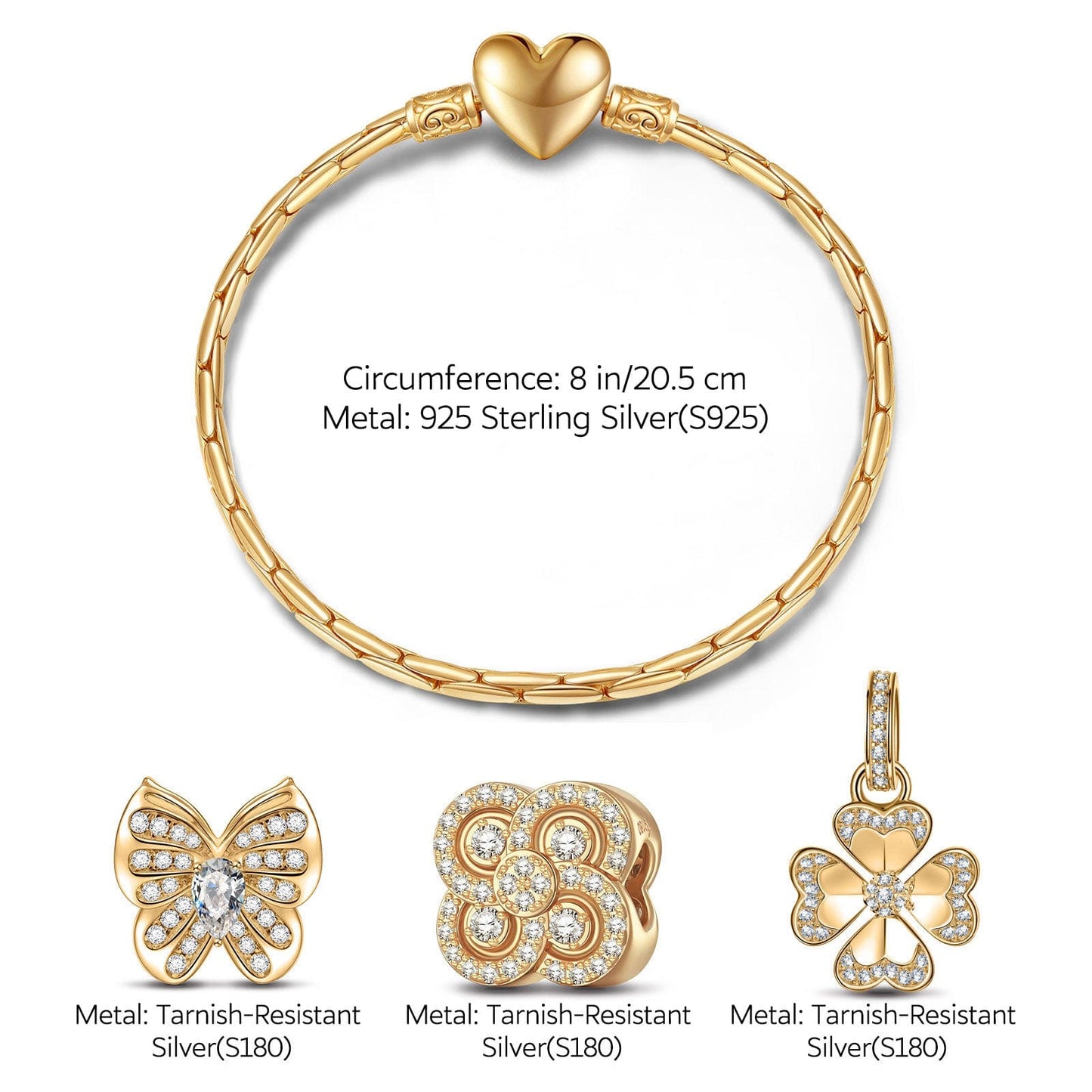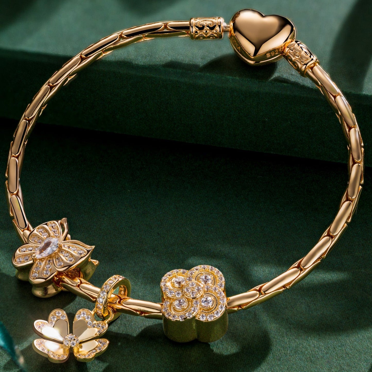 Sterling Silver Spring Garden Charms Bracelet Set In 14K Gold Plated