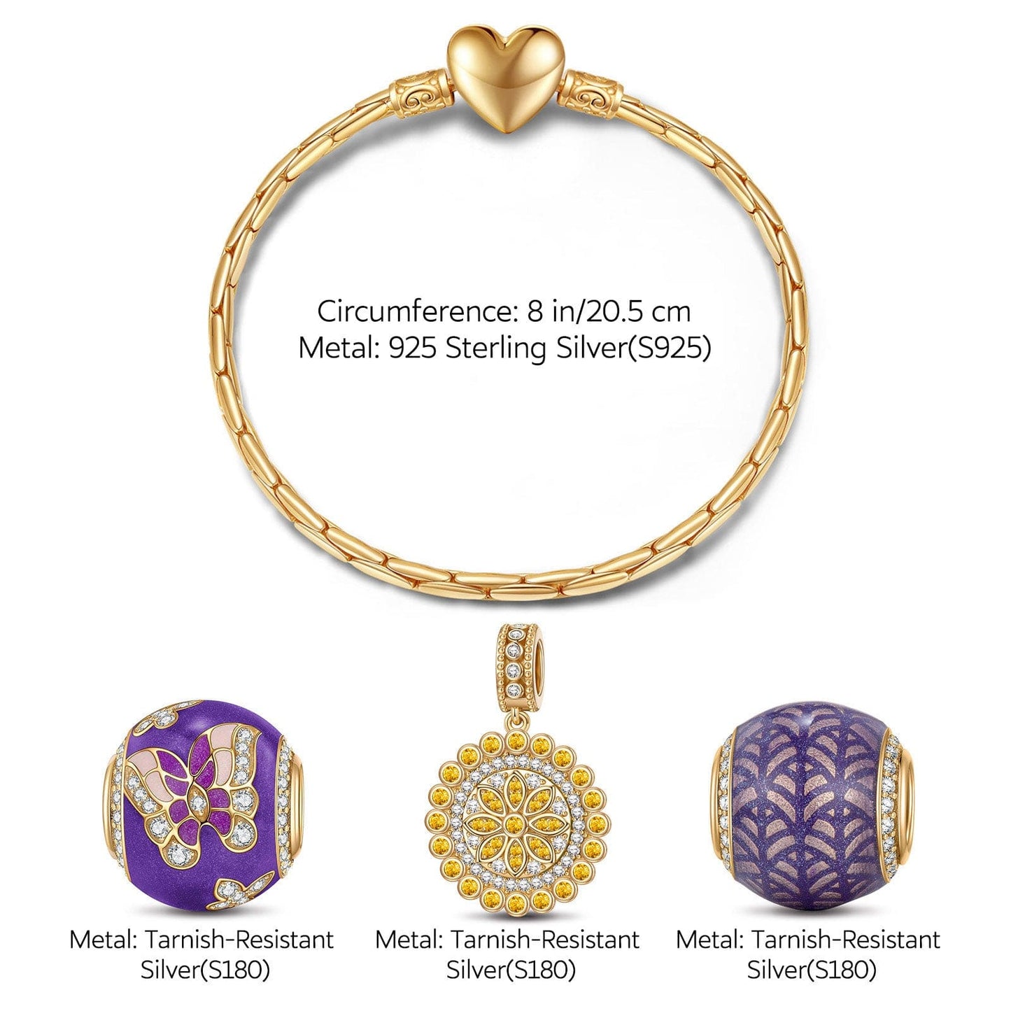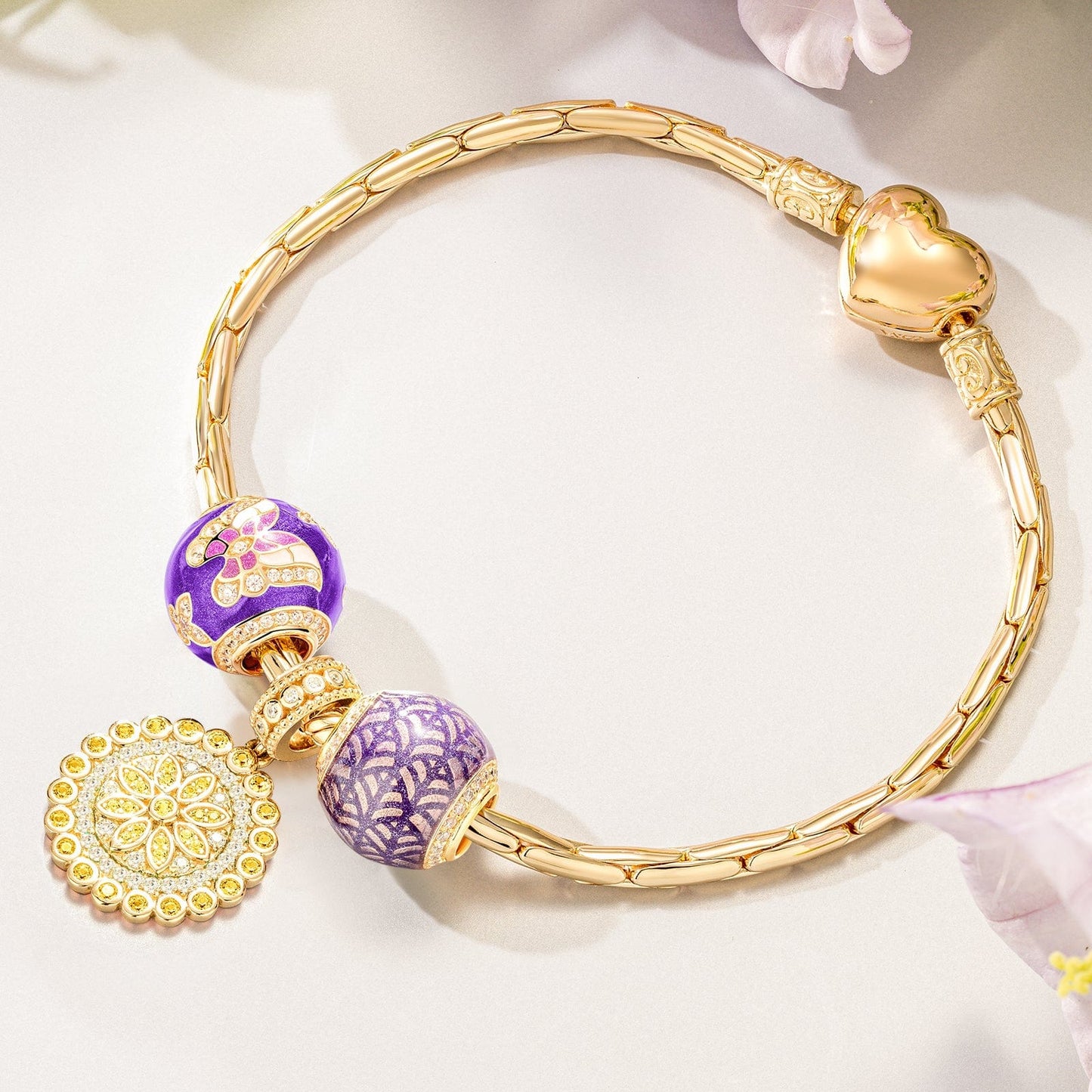 Sterling Silver Purple Story Charms Bracelet Set With Enamel In 14K Gold Plated