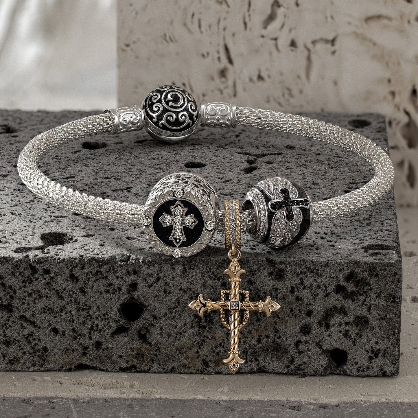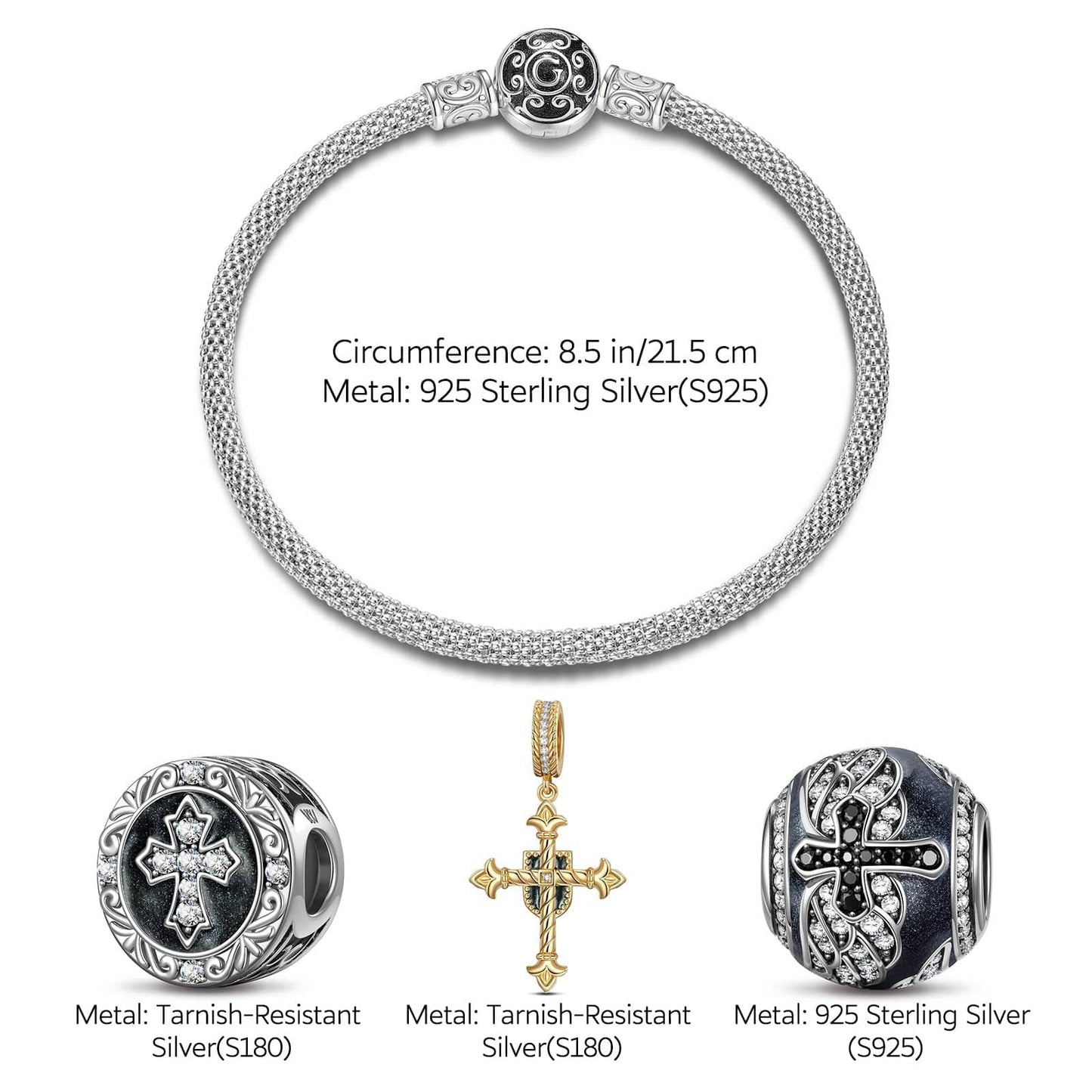 Sterling Silver XL Size The Eyes of God Charms Bracelet Set With Enamel In White Gold Plated For Men