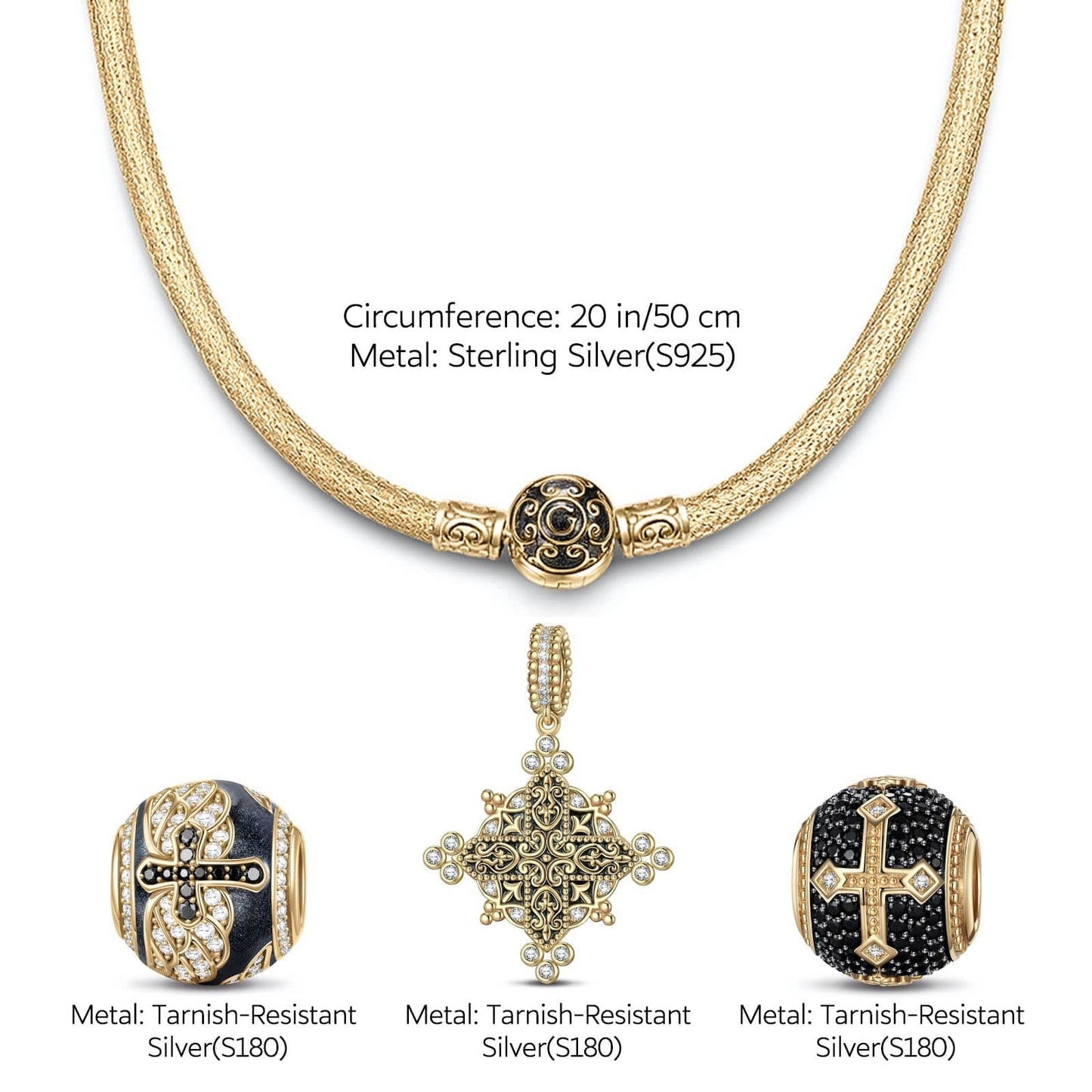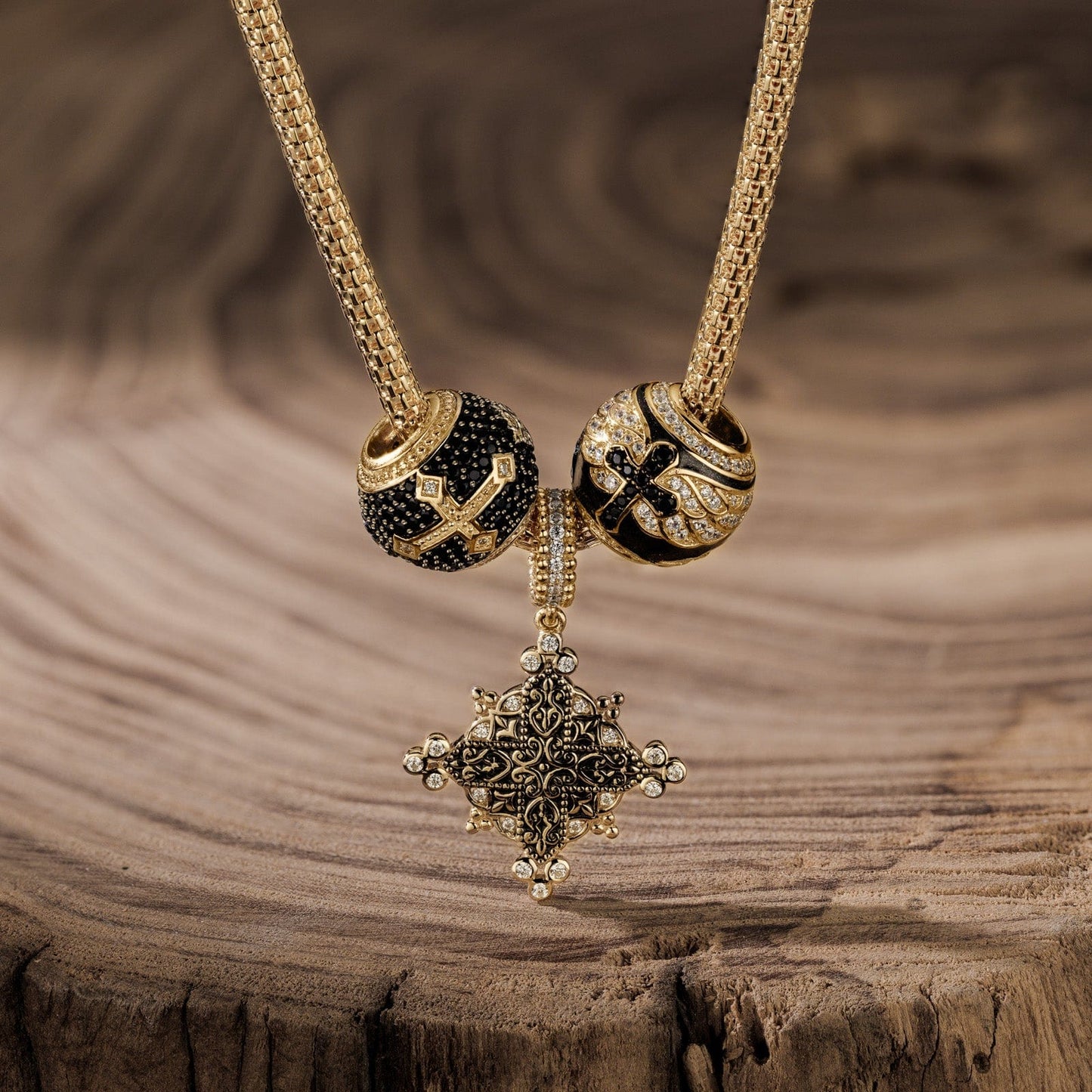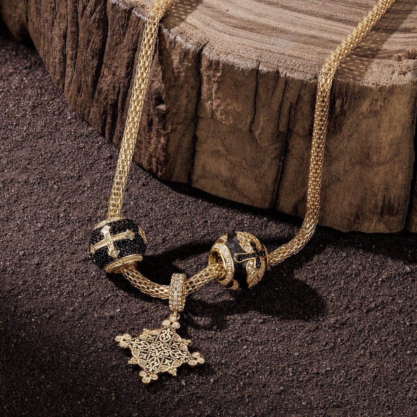 Sterling Silver The Dark Vatican XL Size Charms Necklace Set With Enamel In 14K Gold Plated For Men