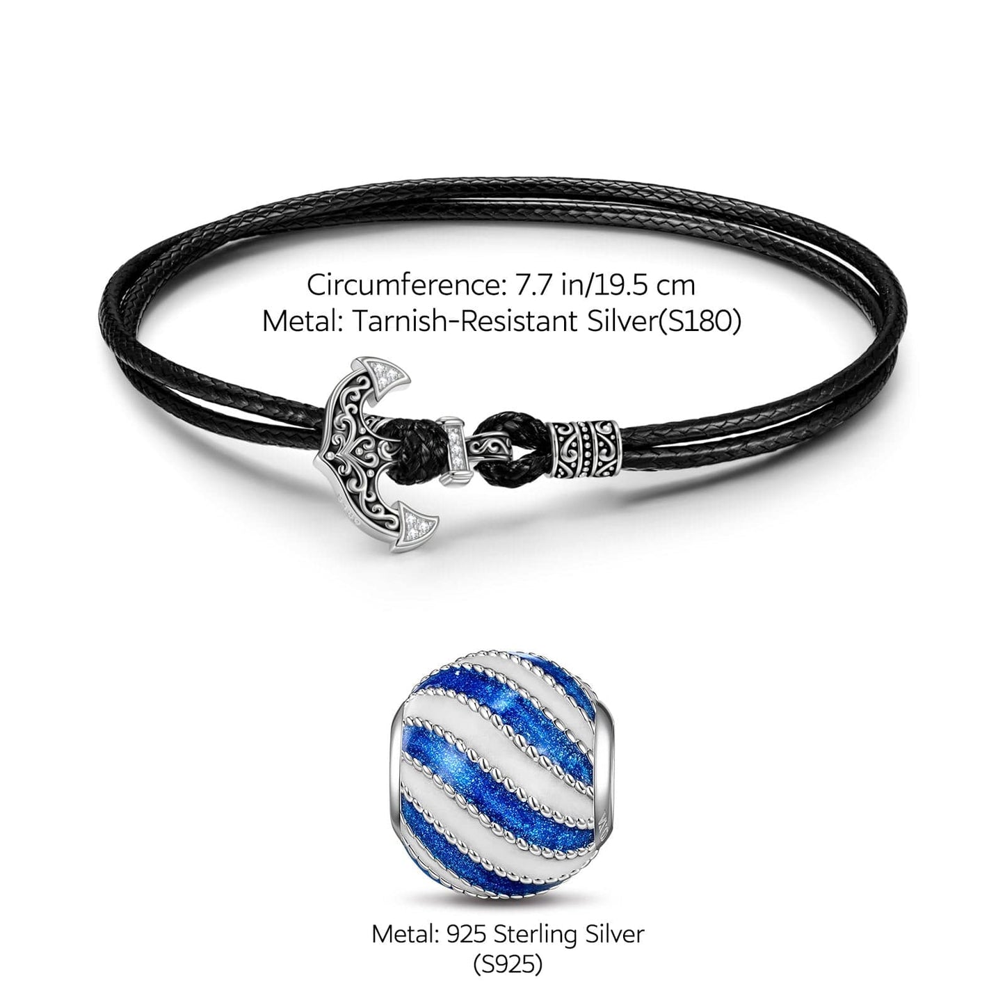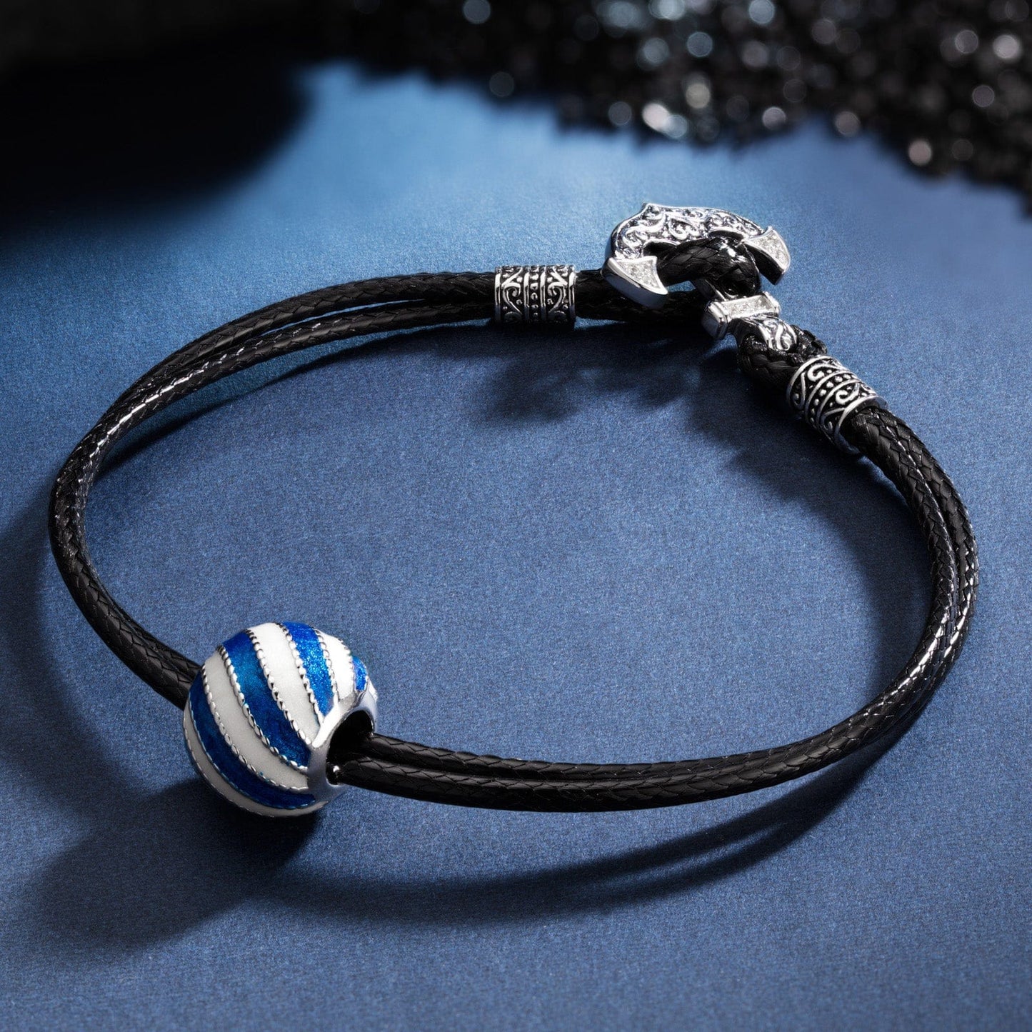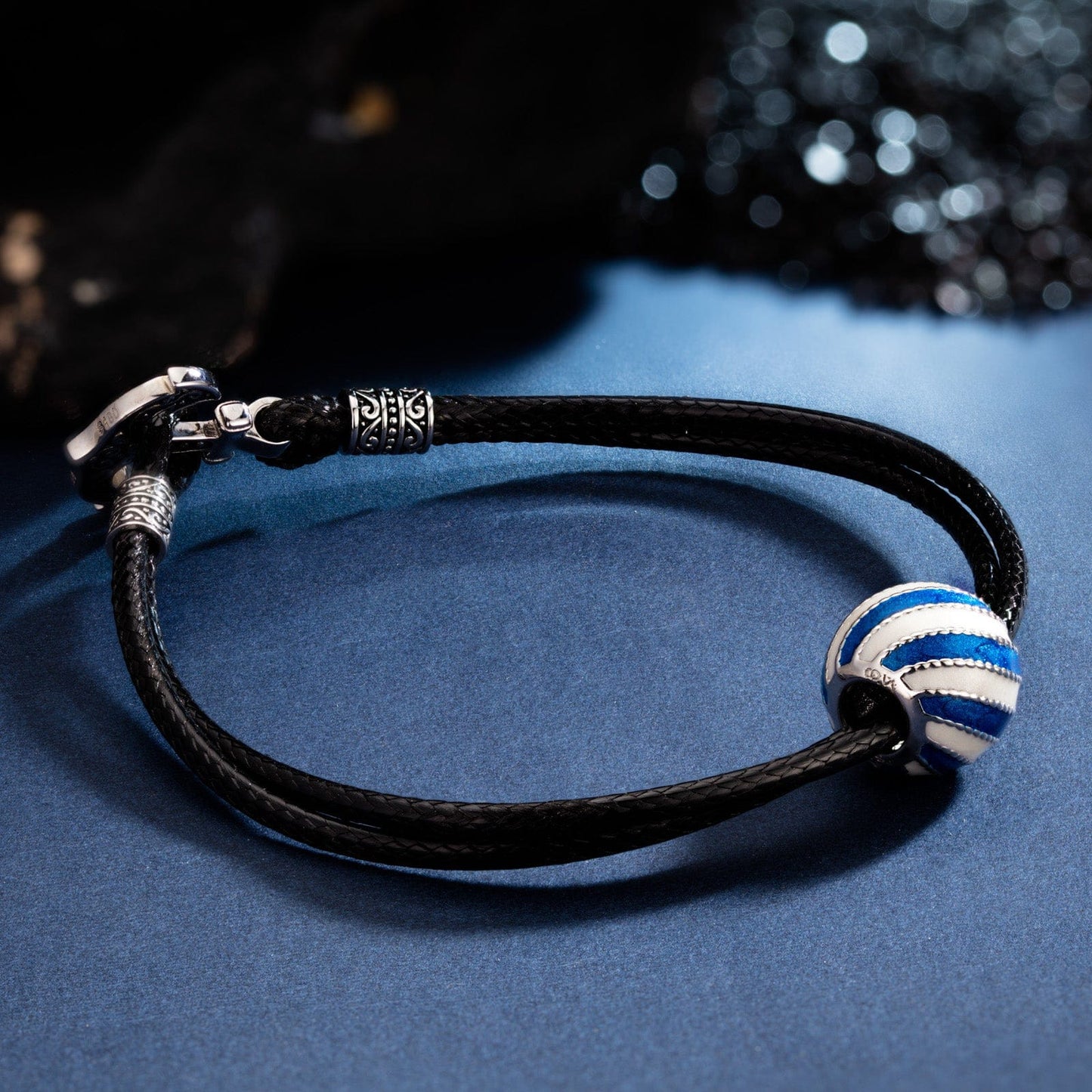 Sterling Silver Surfing Leather Charms Bracelet Set With Enamel In White Gold Plated