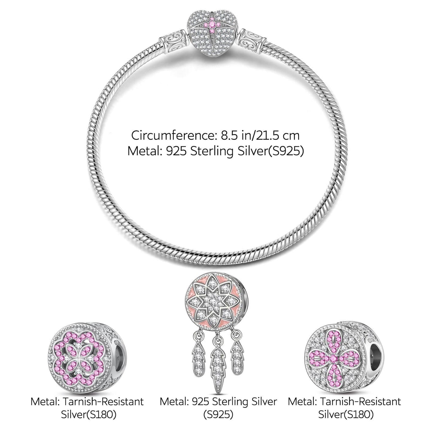 Sterling Silver Lucky Girl Charms Bracelet Set With Enamel In White Gold Plated