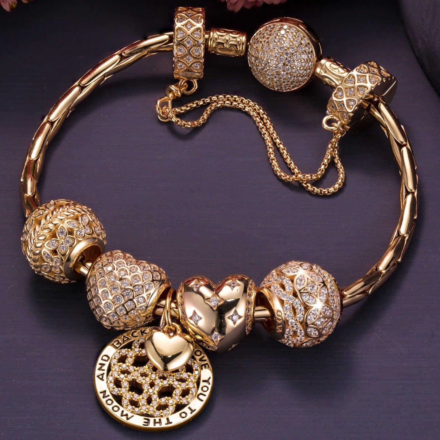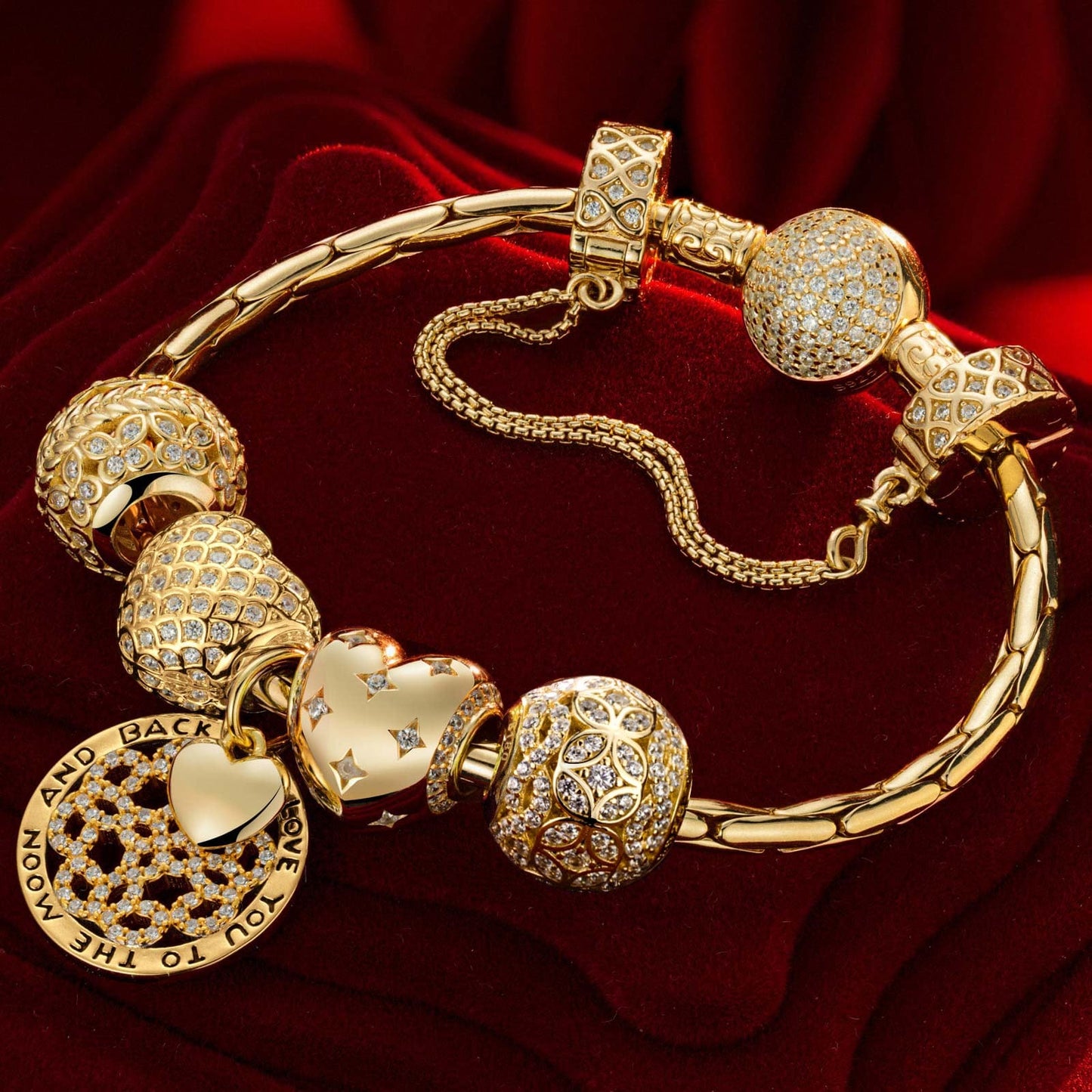 Sterling Silver Sweet Love Charms Bracelet Set In 14K Gold Plated