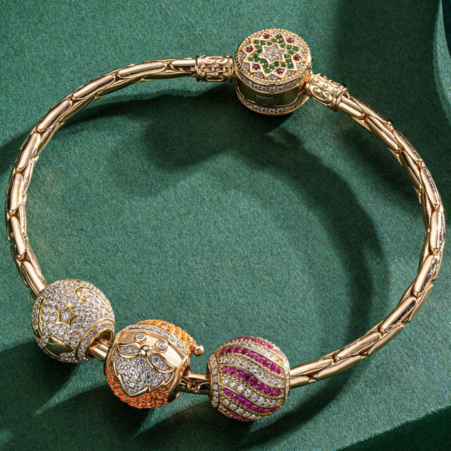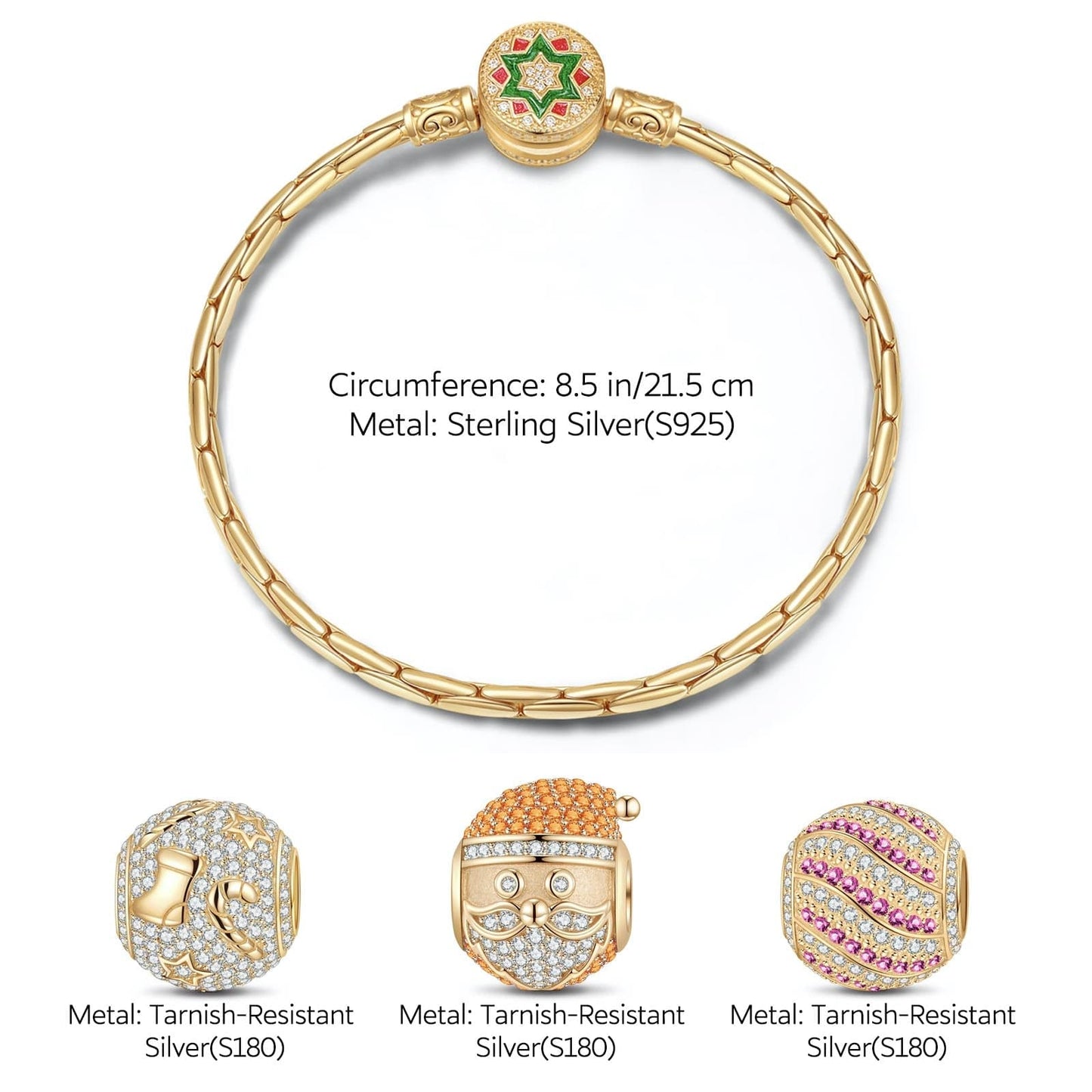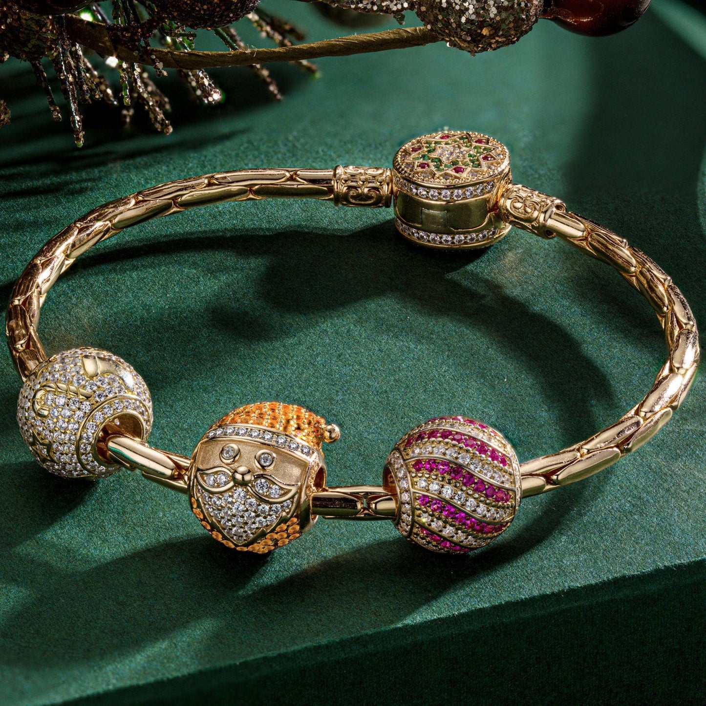 Sterling Silver Santa's Presents Charms Bracelet Set In 14K Gold Plated
