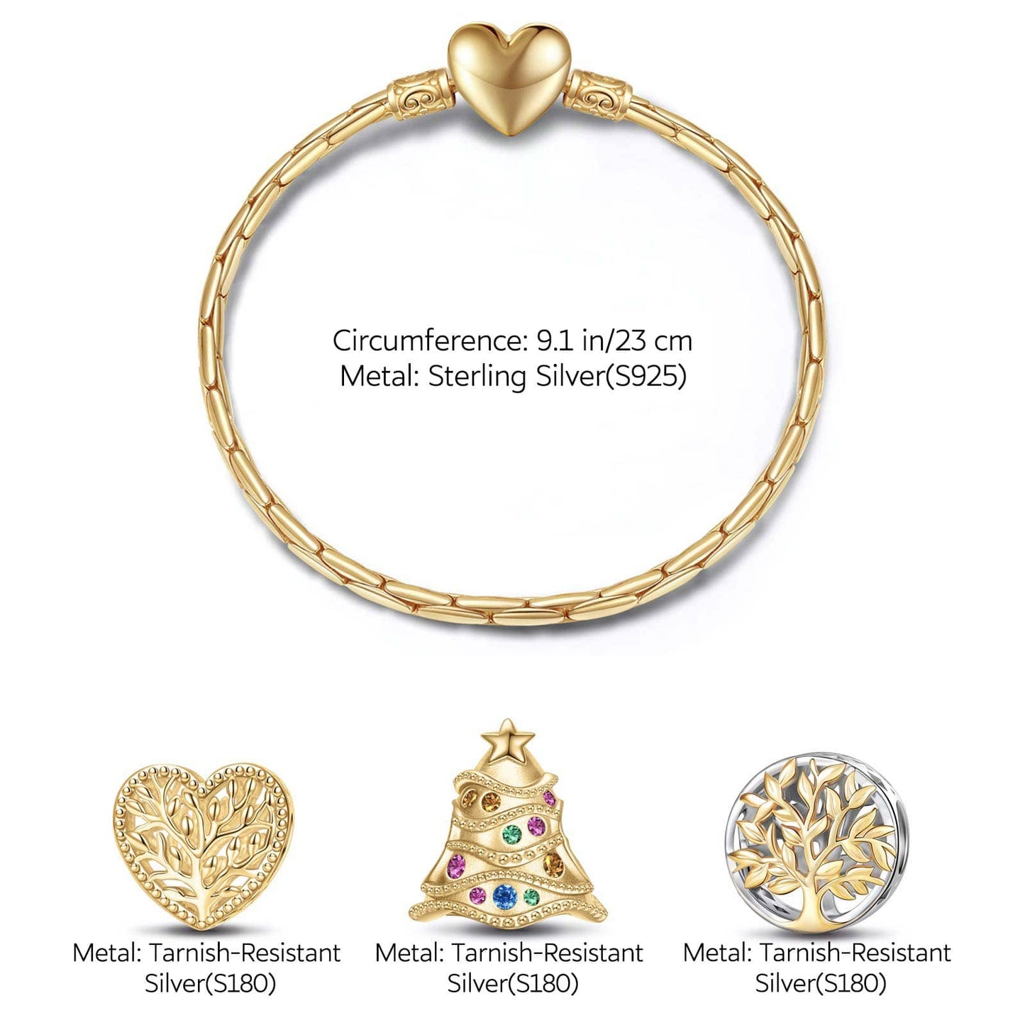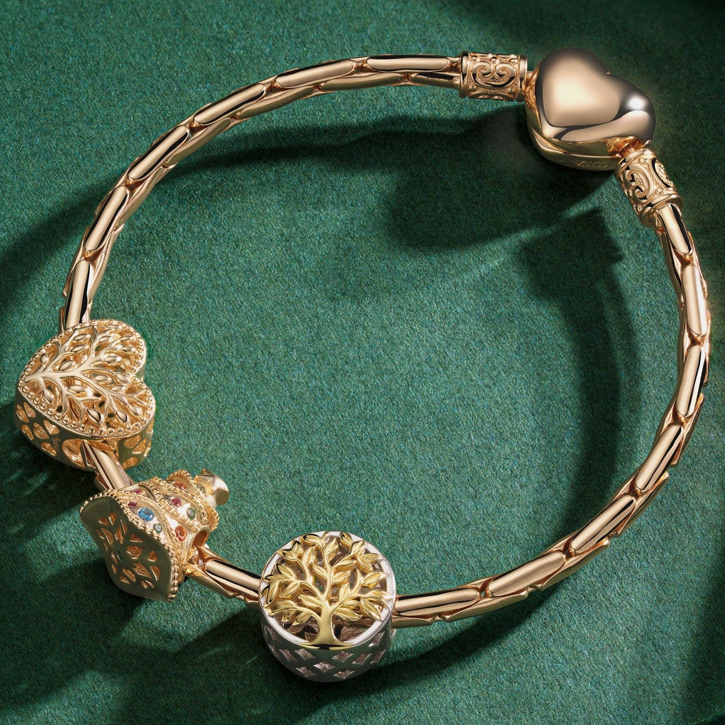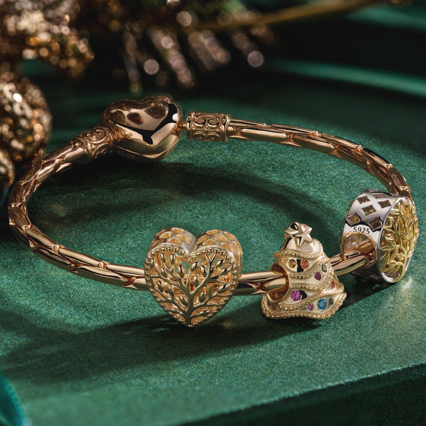 Sterling Silver Tree of Life and Jingle Bells Charms Bracelet Set In 14K Gold Plated