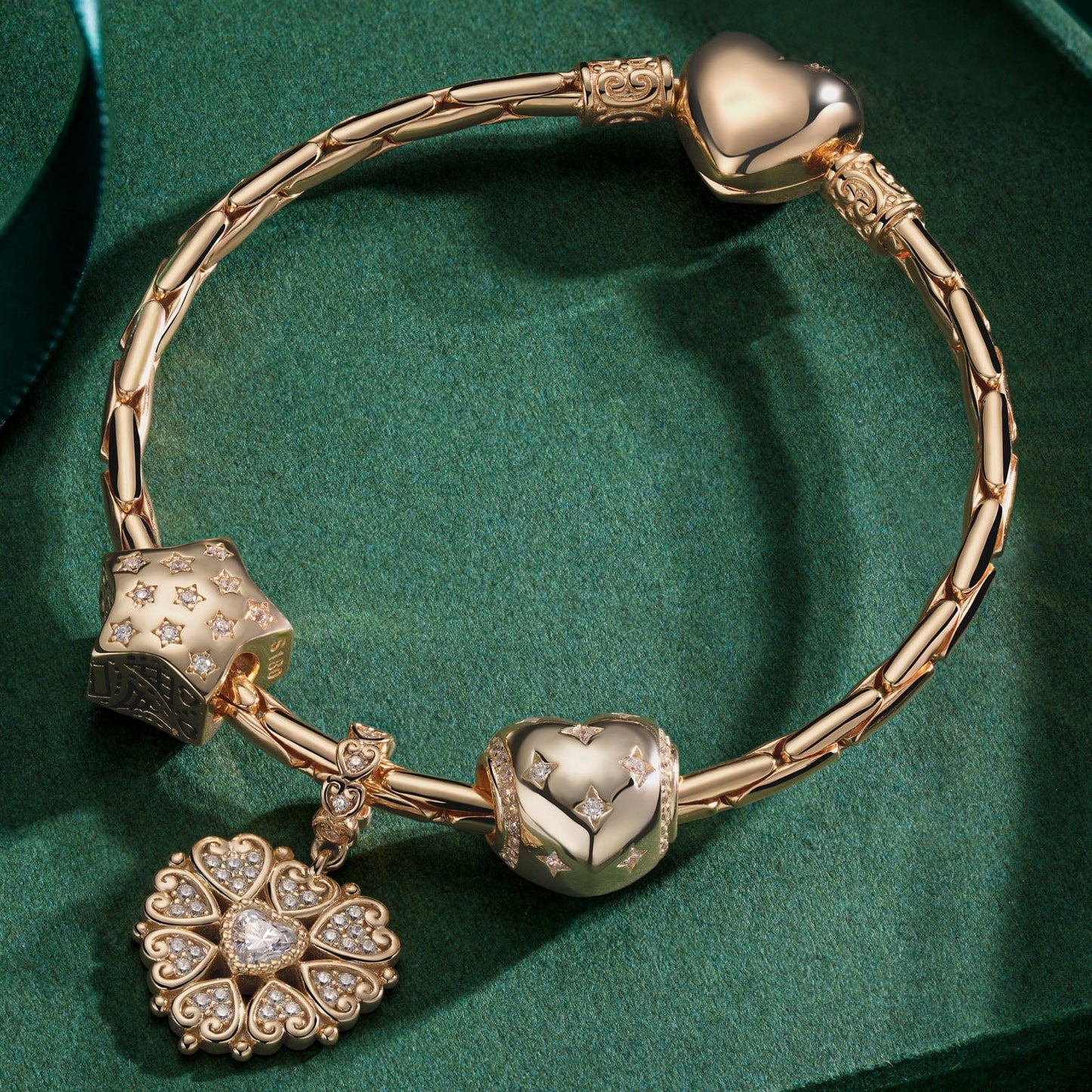 Sterling Silver Starlight Love Charms Bracelet Set In 14K Gold Plated