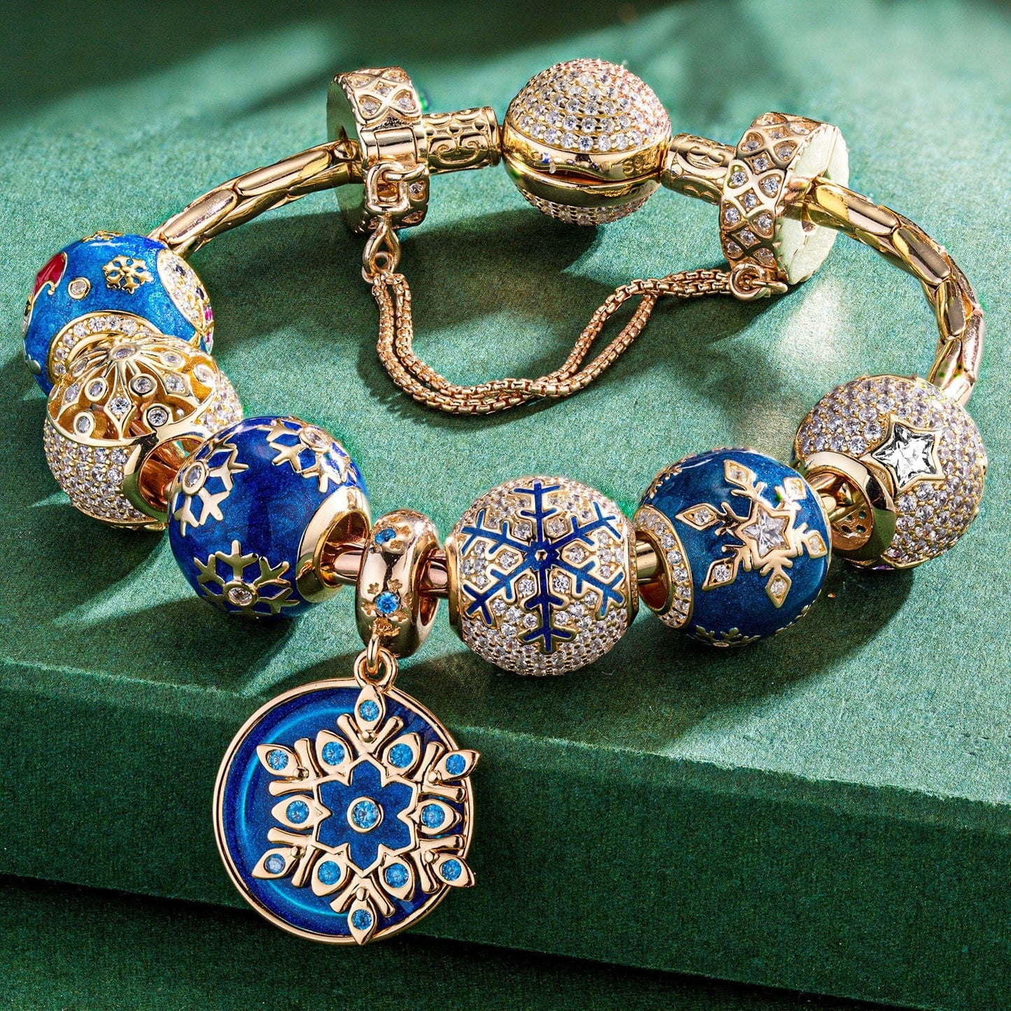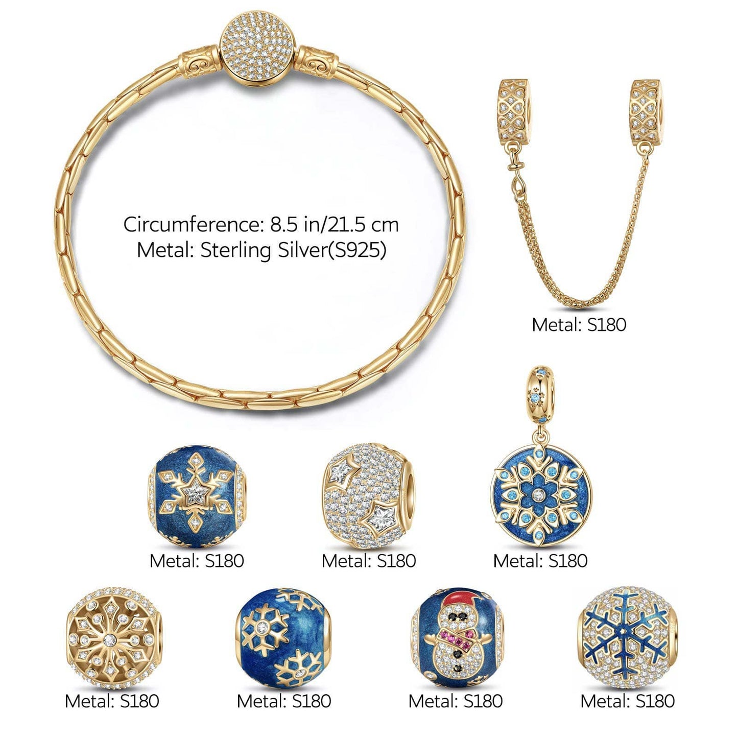 Sterling Silver Snowflake Dreams Charms Bracelet Set With Enamel In 14K Gold Plated