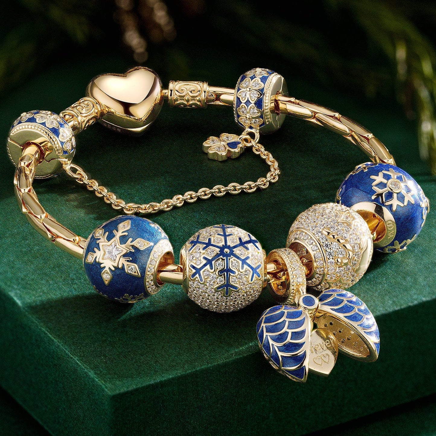 Sterling Silver Arctic Dreams Charms Bracelet Set With Enamel In 14K Gold Plated