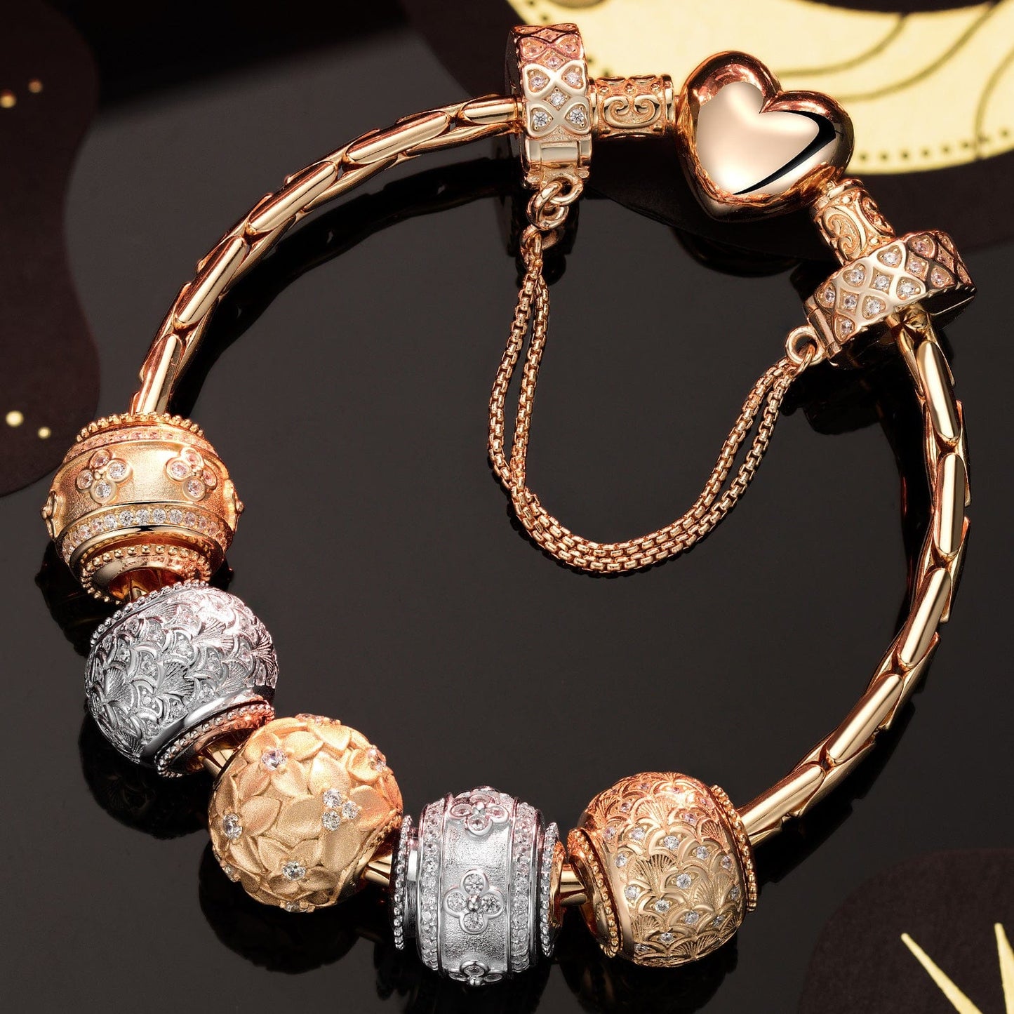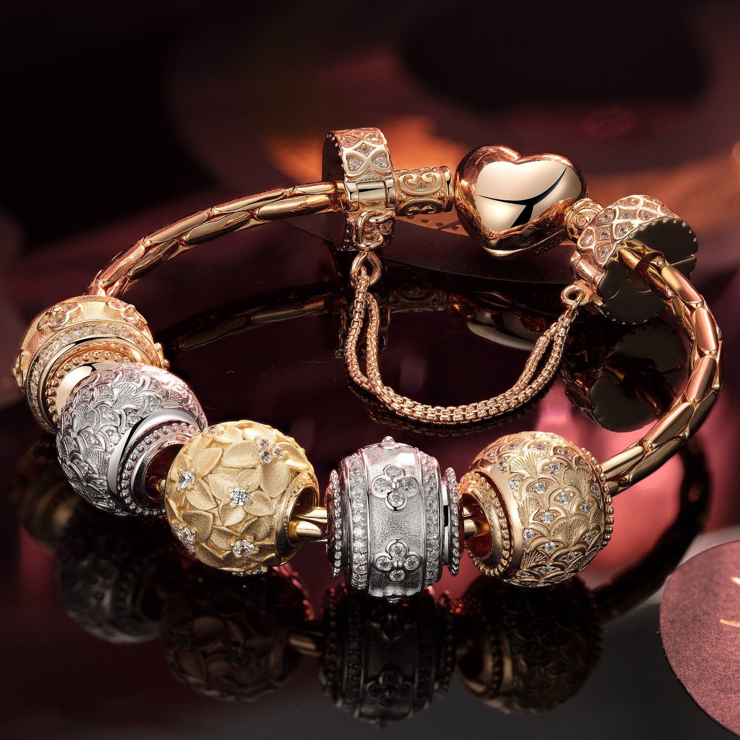 Sterling Silver May You Bloom Abundantly Charms Bracelet Set In 14K Gold Plated