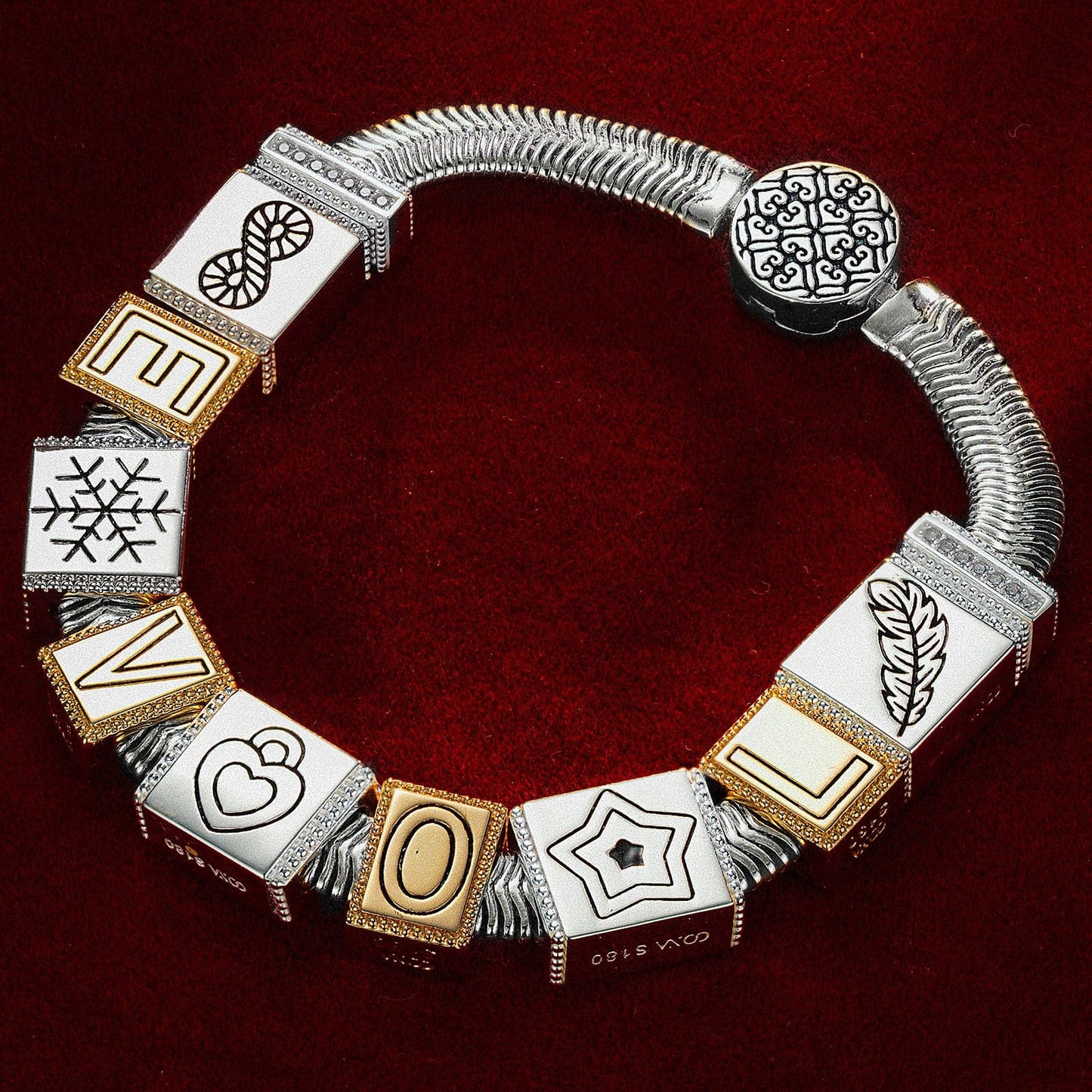 Sterling Silver Whispers Love Rectangular Charms Bracelet Set, Featuring Dual Plating in 14K Gold and White Gold